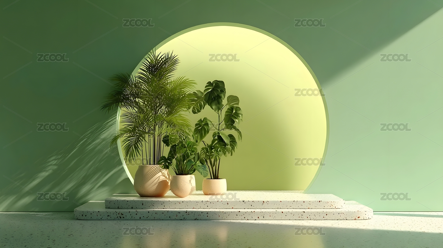 绿植与圆形背景的简约设计