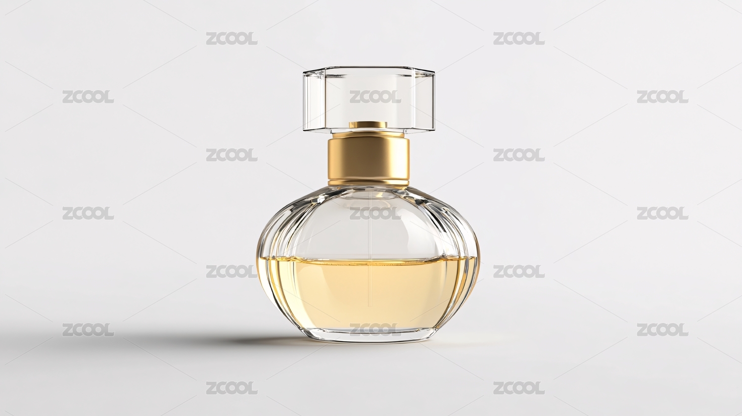 香水瓶,插画,透明瓶身,金色瓶盖,简约,优雅,设计,装饰,产品展示,静物