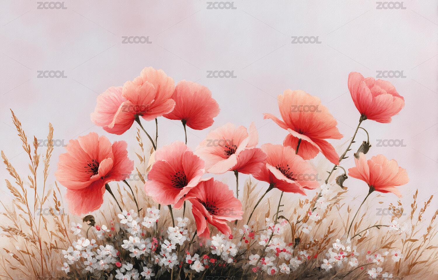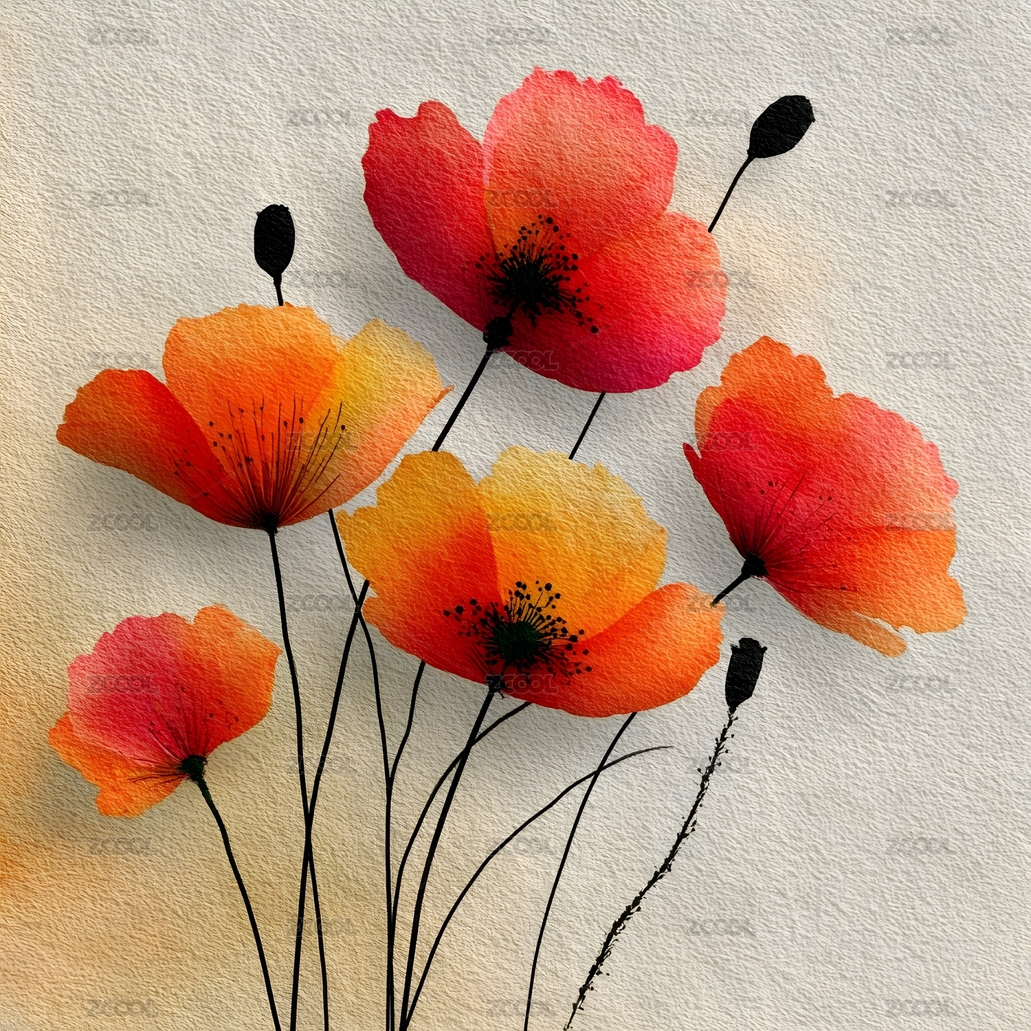 橙色花朵,植物,插画,花卉,画面元素,自然,唯美,清新,柔和色调,背景