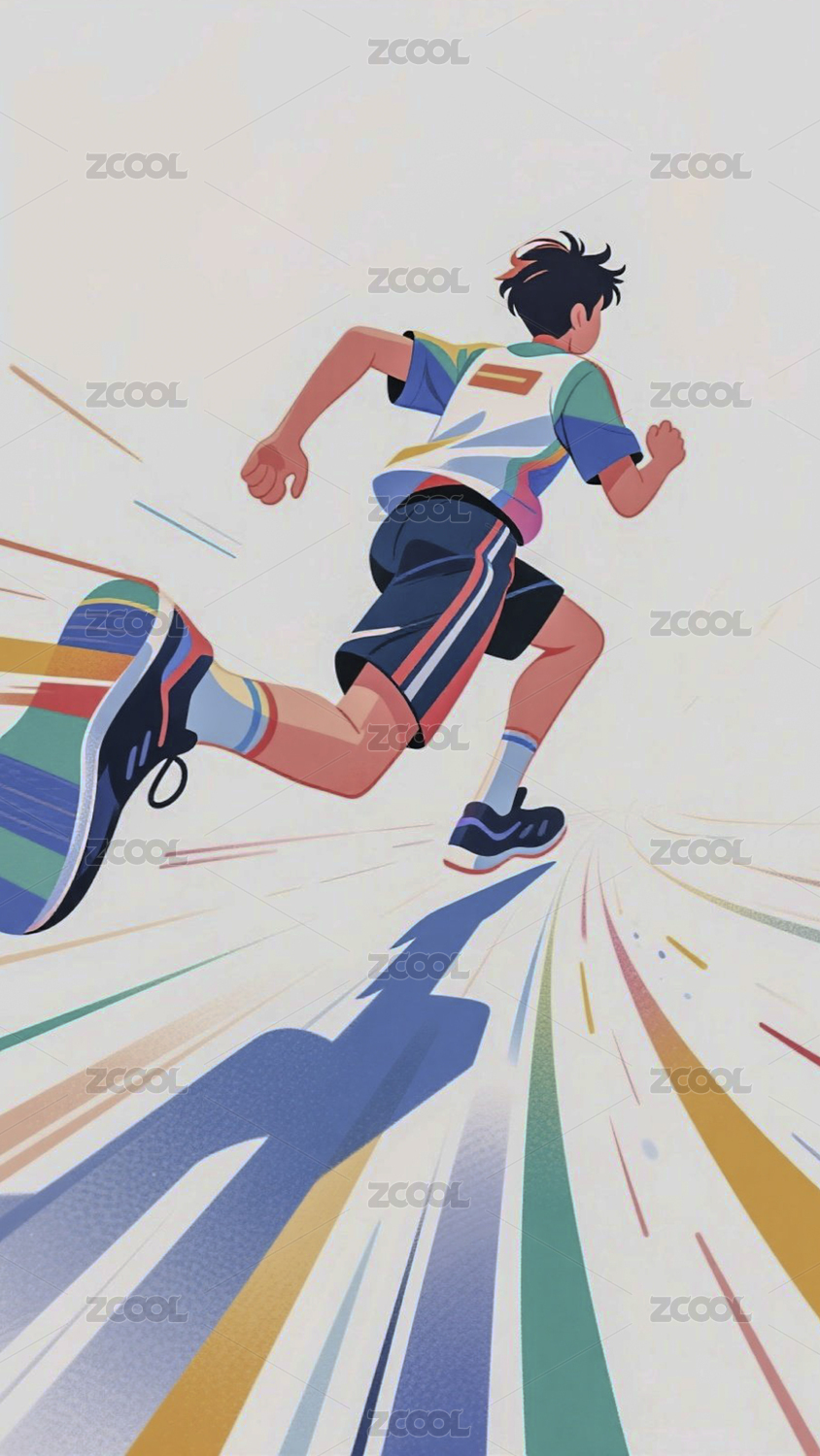 跑步体育运动彩绘卡通绘画