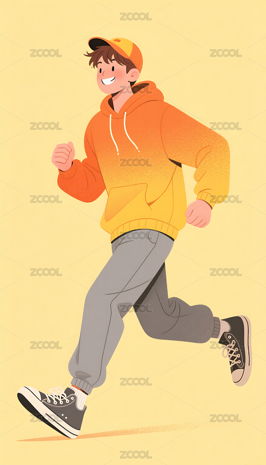 扁平风格美式时尚穿搭男生奔跑插画