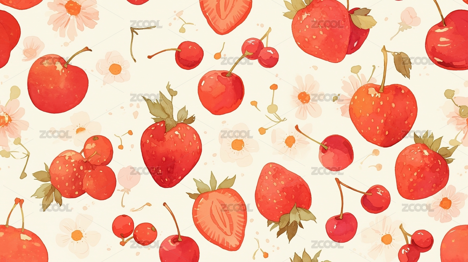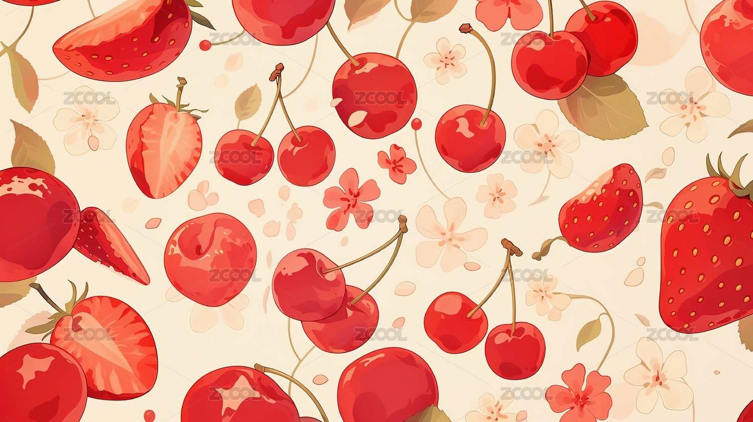 樱桃,蝴蝶结,粉色,格纹,甜美,可爱,清新,水果,图案,壁纸