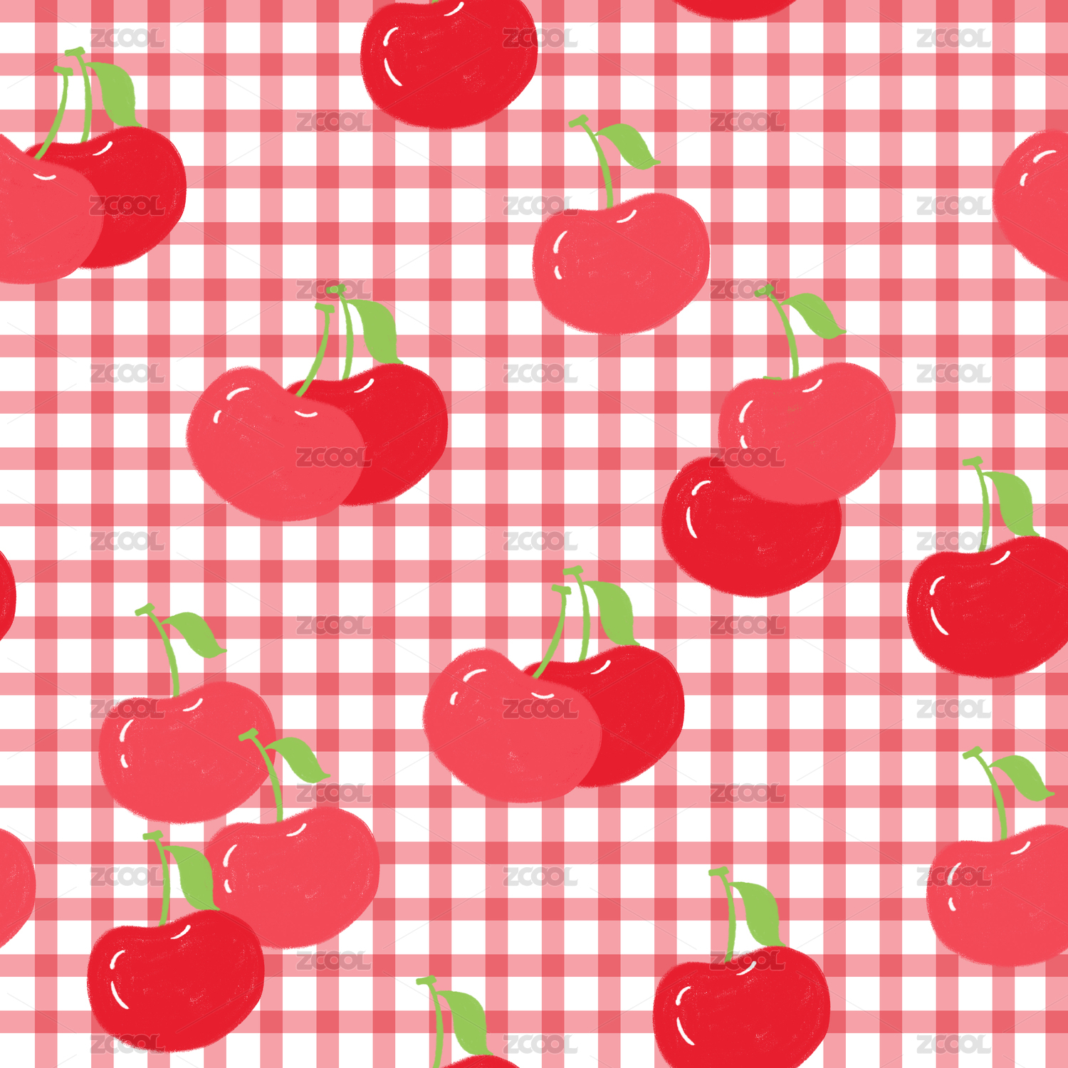 樱桃,蝴蝶结,粉色,格纹,甜美,可爱,清新,水果,图案,壁纸