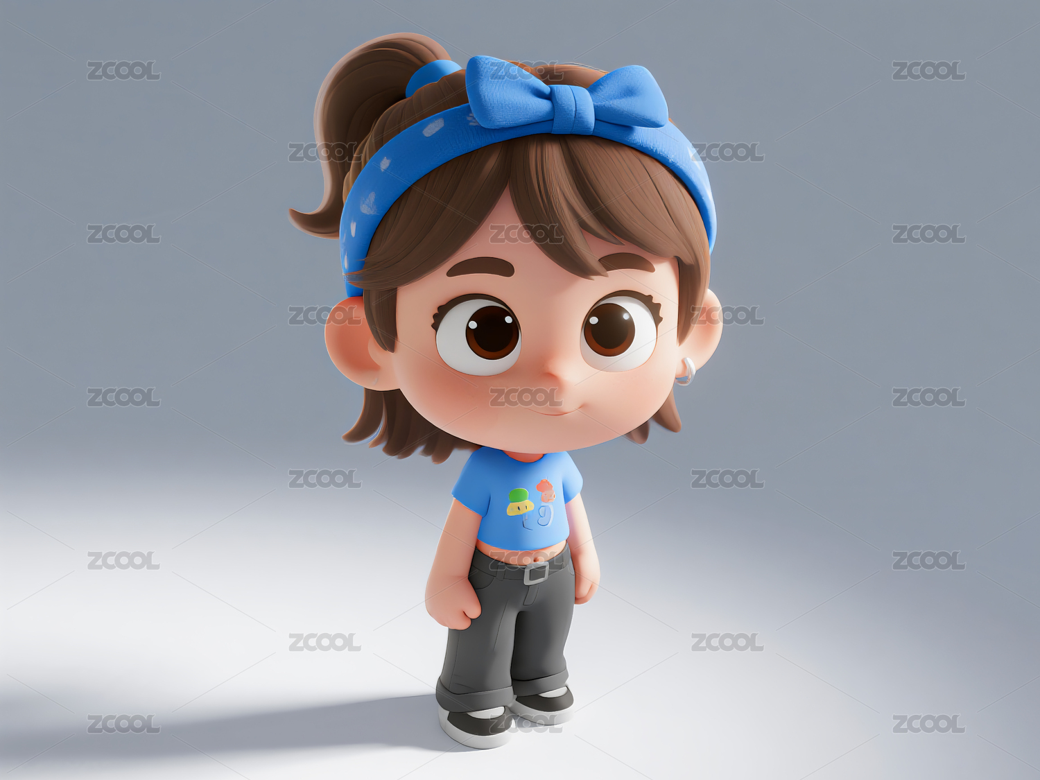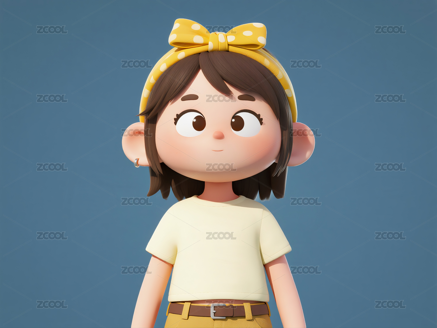 一个卡通人物穿着黄色衬衫和蓝色连衣裙特写