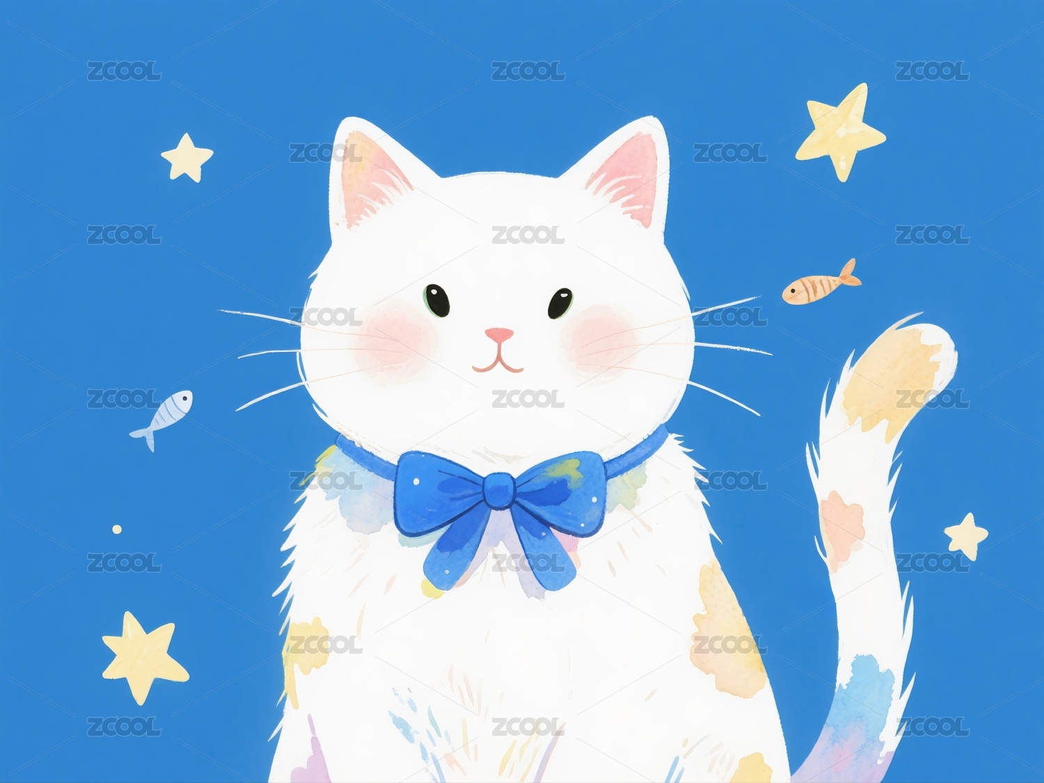 猫咪戴着蝴蝶结周围星空