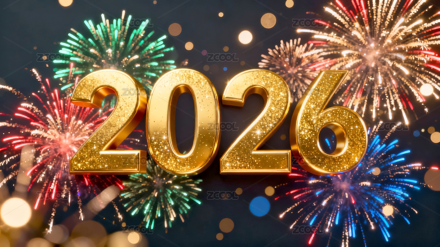 烟花, 夜空, 金色, 红色, 跨年, 喜庆, 热闹, 欢乐, 海报, 封面