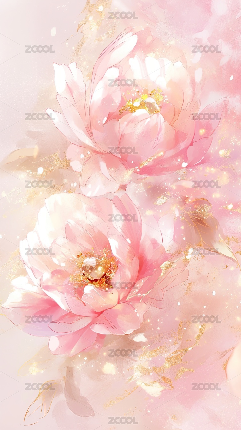 花,花朵,春天,春分,背景,牡丹花,牡丹,水彩