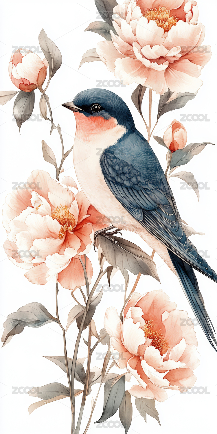 一只色彩鲜艳的鸟儿栖息在一朵盛开的花朵上