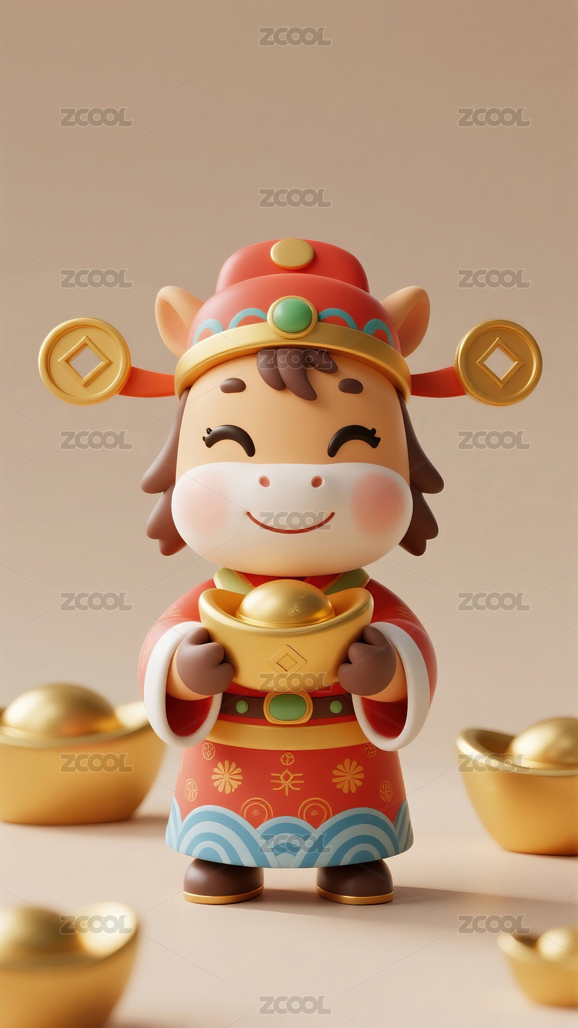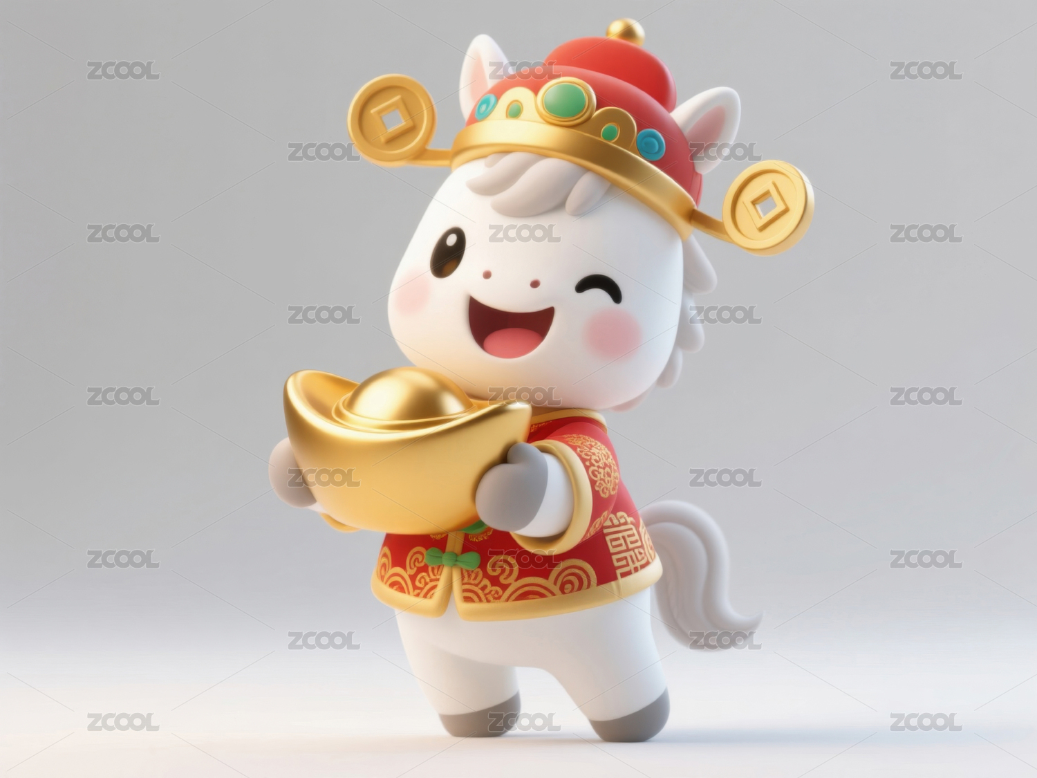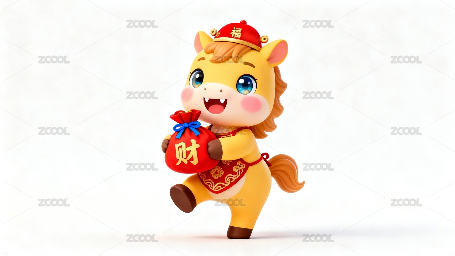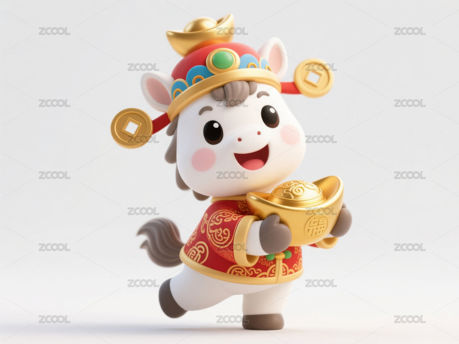 新年,小马,福气,金币,红色,服饰,卡通,节日,可爱