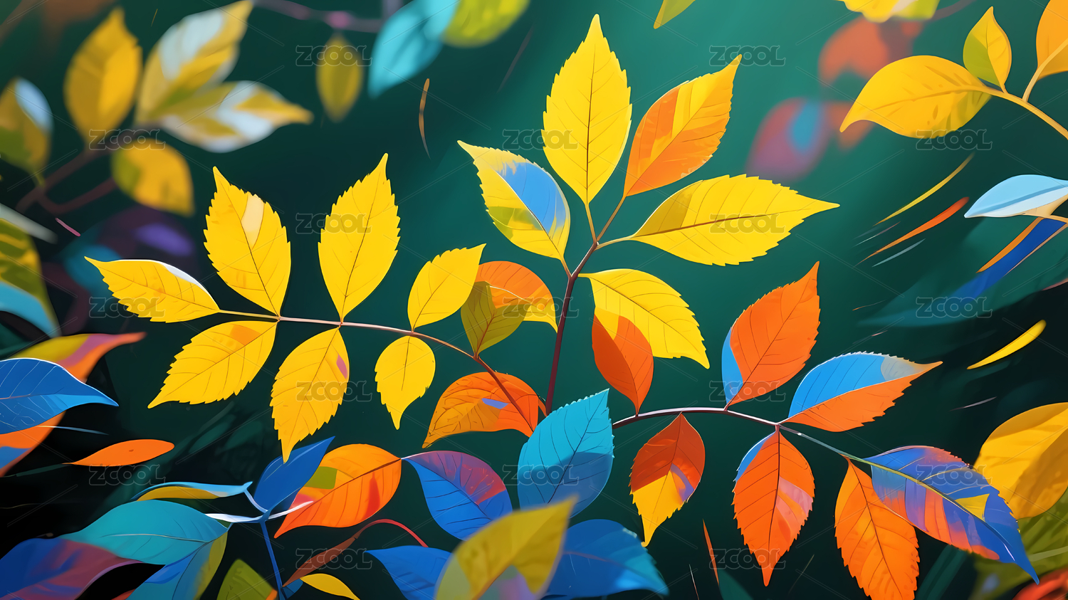 色彩斑斓,叶子,枝条,画作,抽象,艺术,美感,创意,色彩,丰富