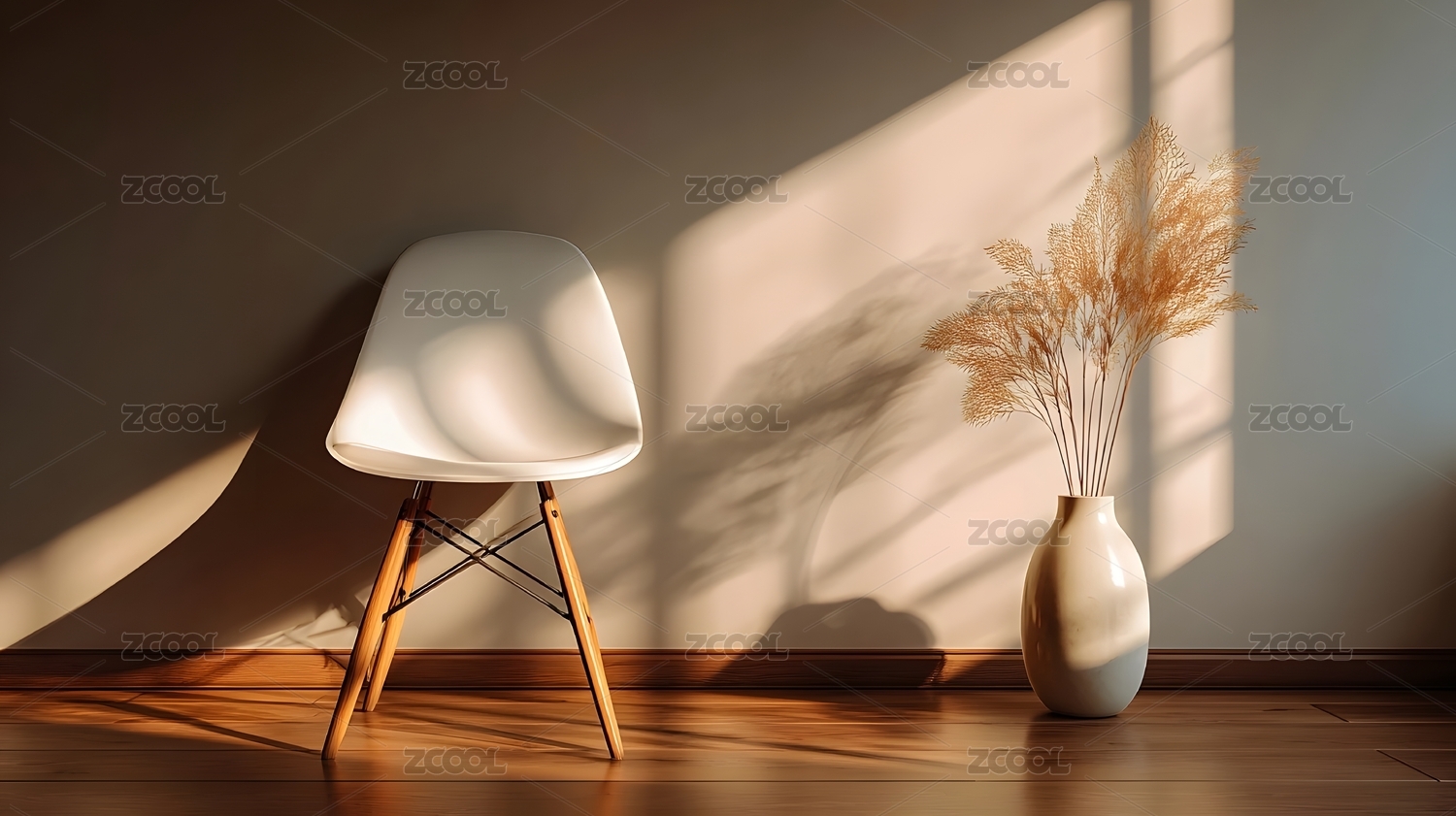 光影白椅靠墙显静谧