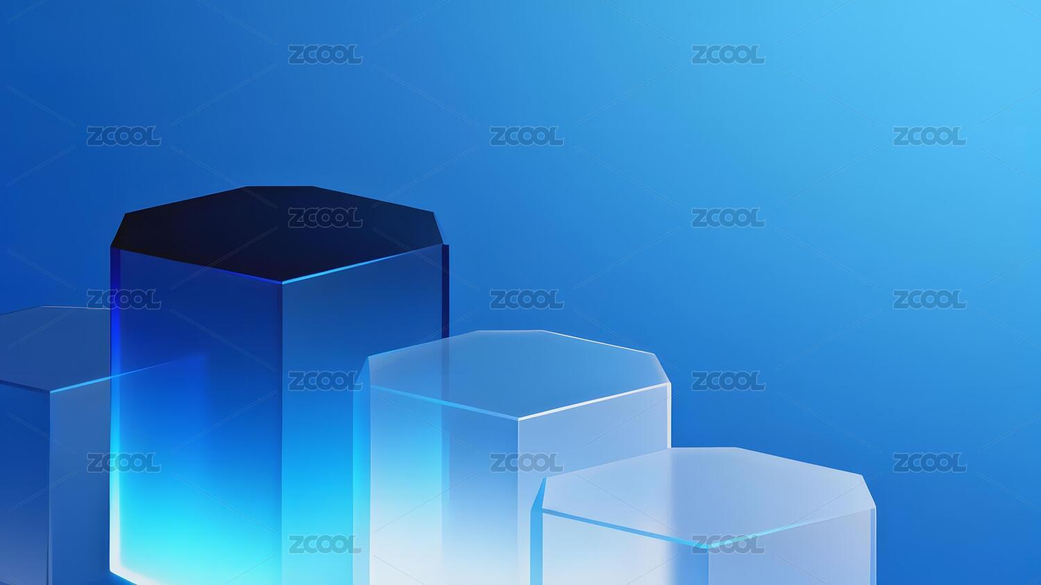 3D蓝色渐变玻璃质感工业工厂建筑背景