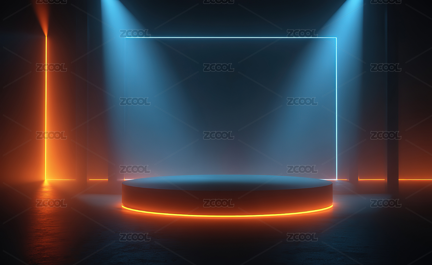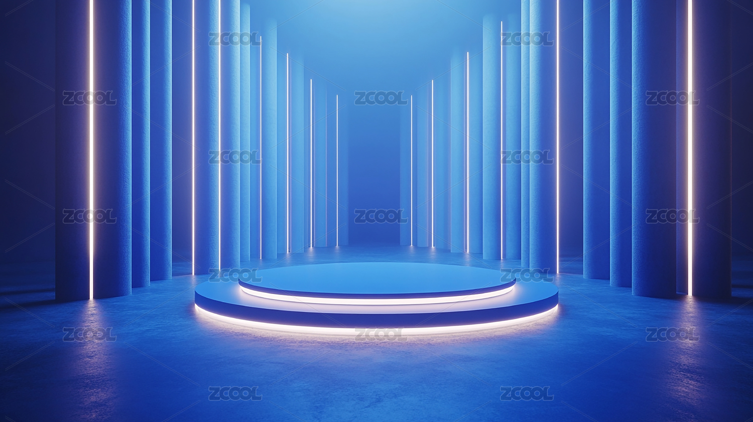 蓝色霓虹灯下的圆形展台