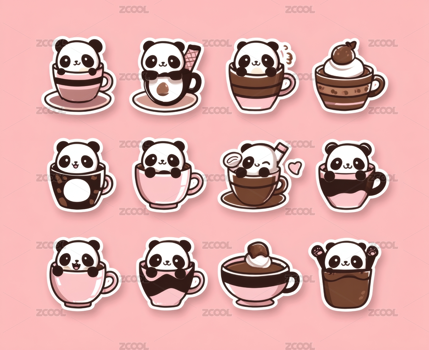 可爱熊猫咖啡甜品插画