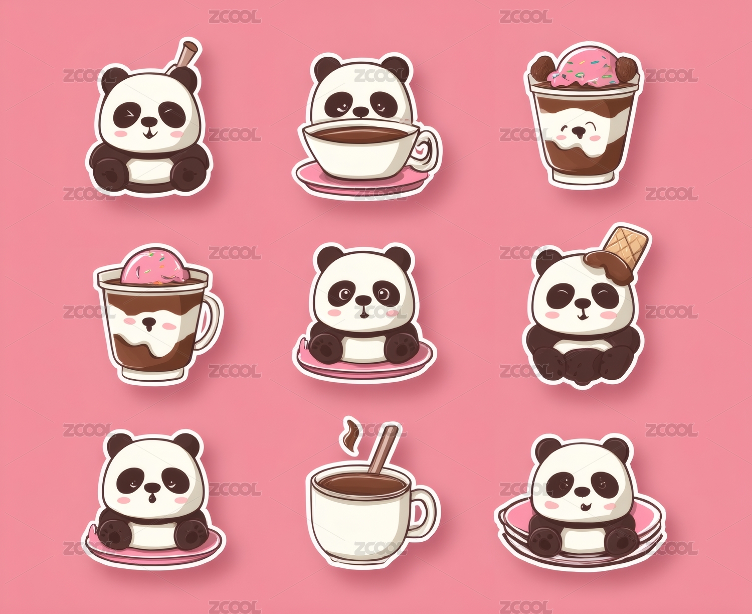 萌系熊猫冰饮甜品插画