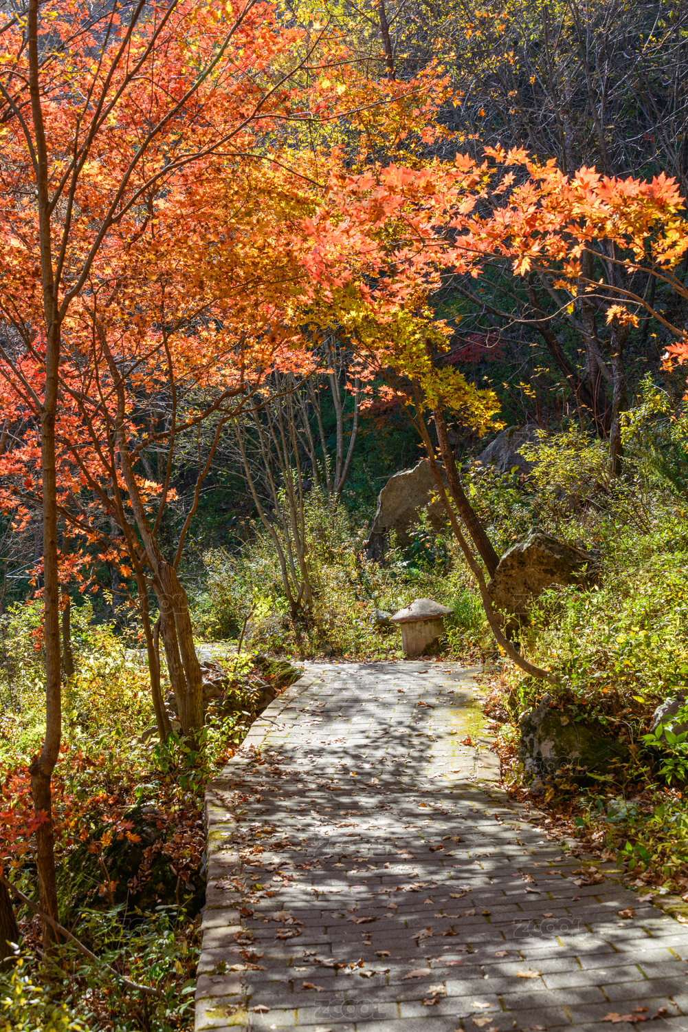 日本京都北野天满宫秋季枫叶,御土居红叶景观和花园小路