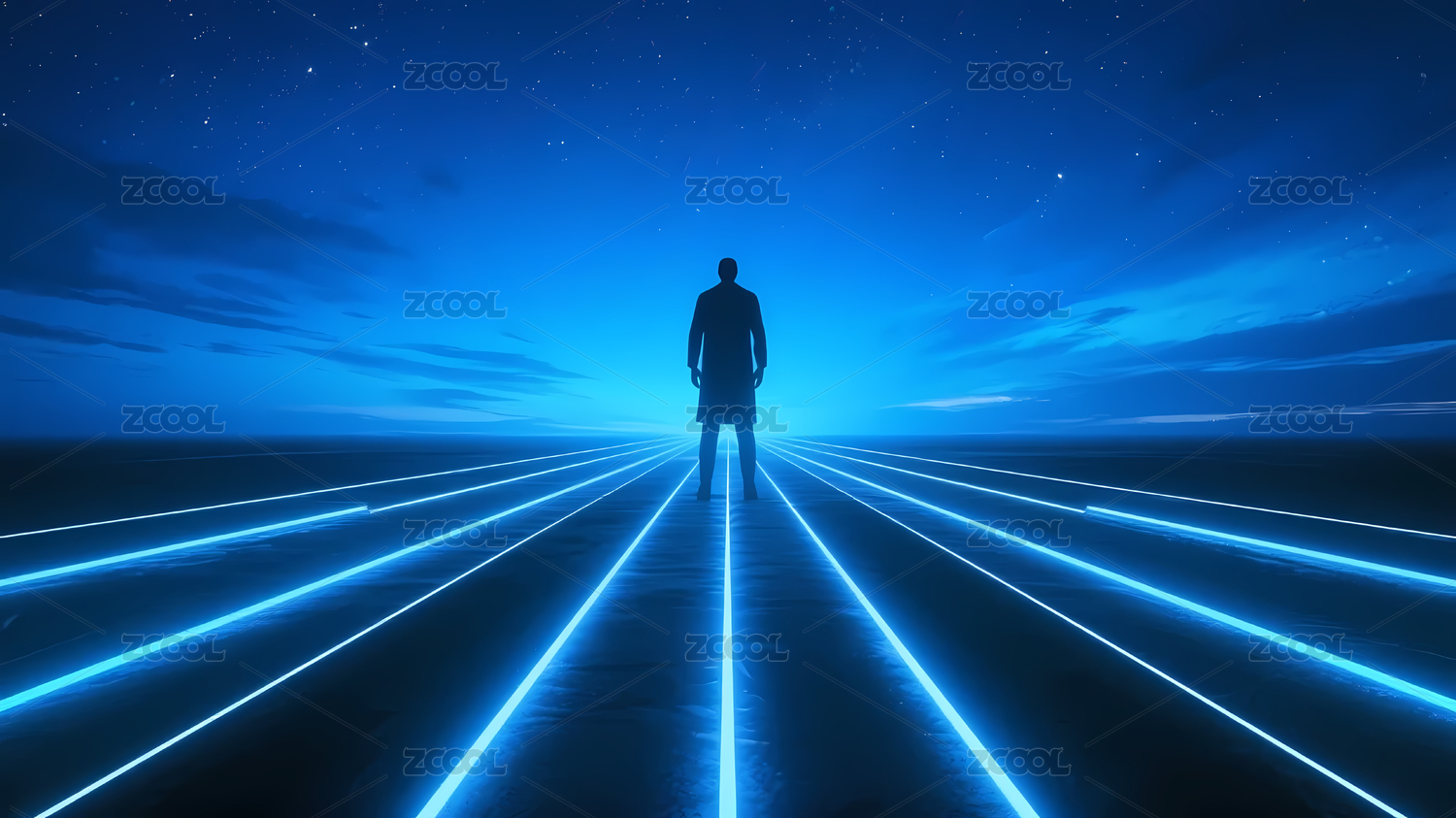 人立于蓝色光线空间