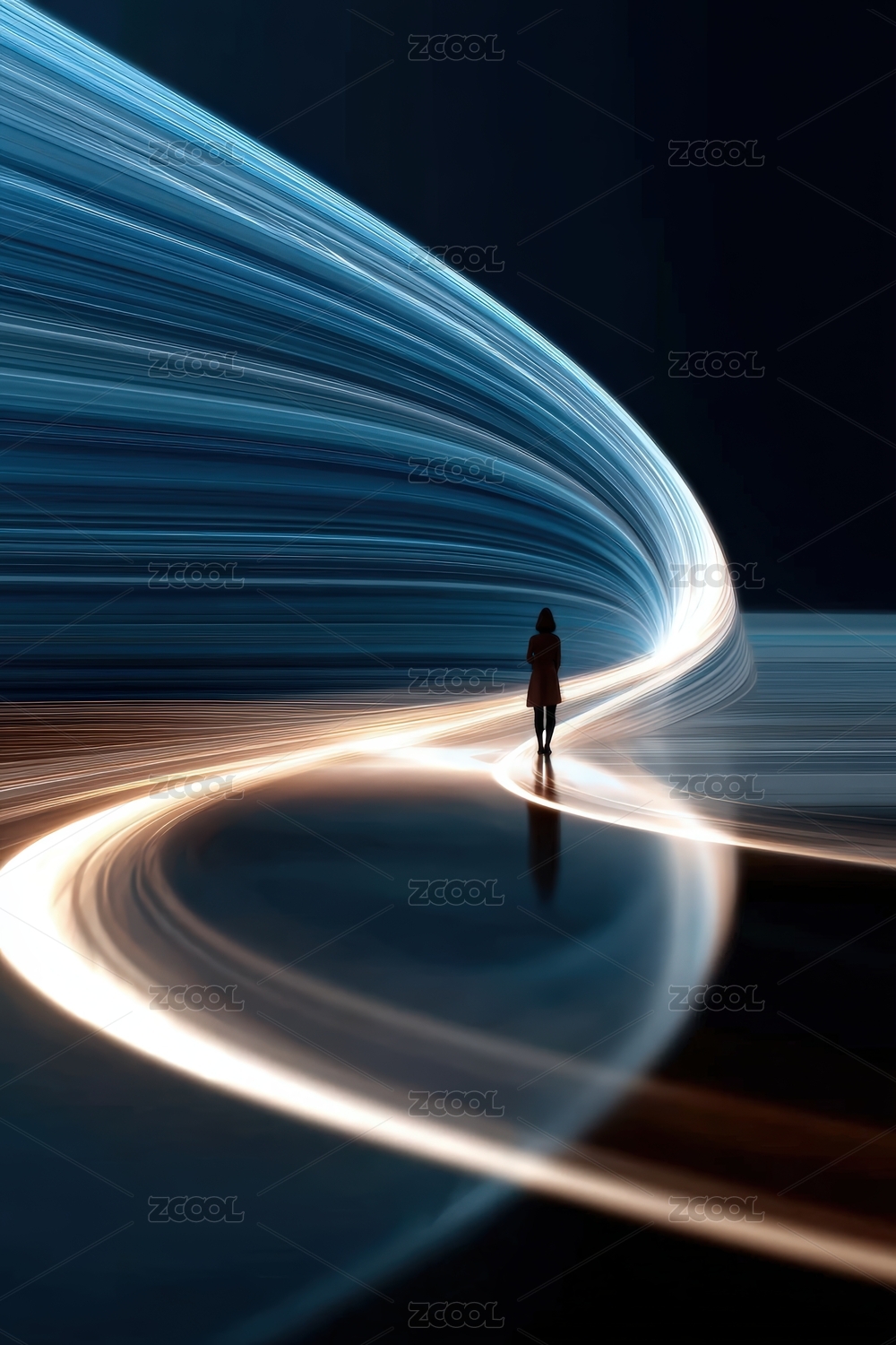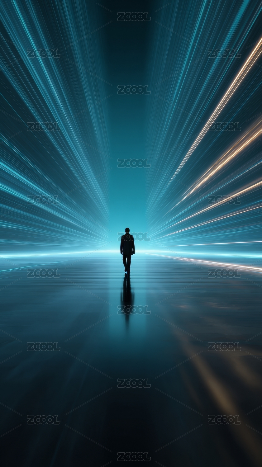 未来科技光路中孤独前行的人影