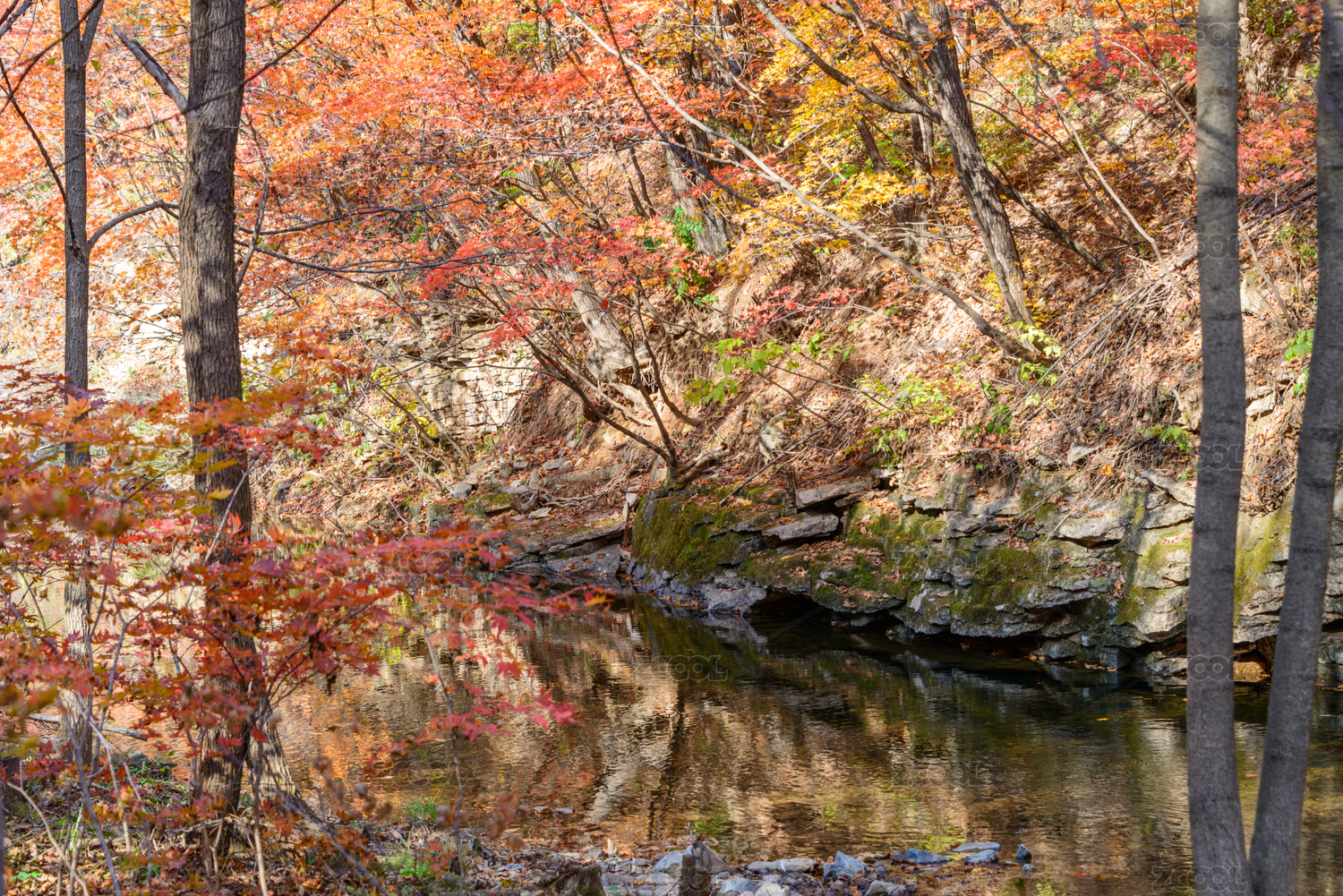 沈阳本溪老边沟 秋天枫树红叶溪流自然风光