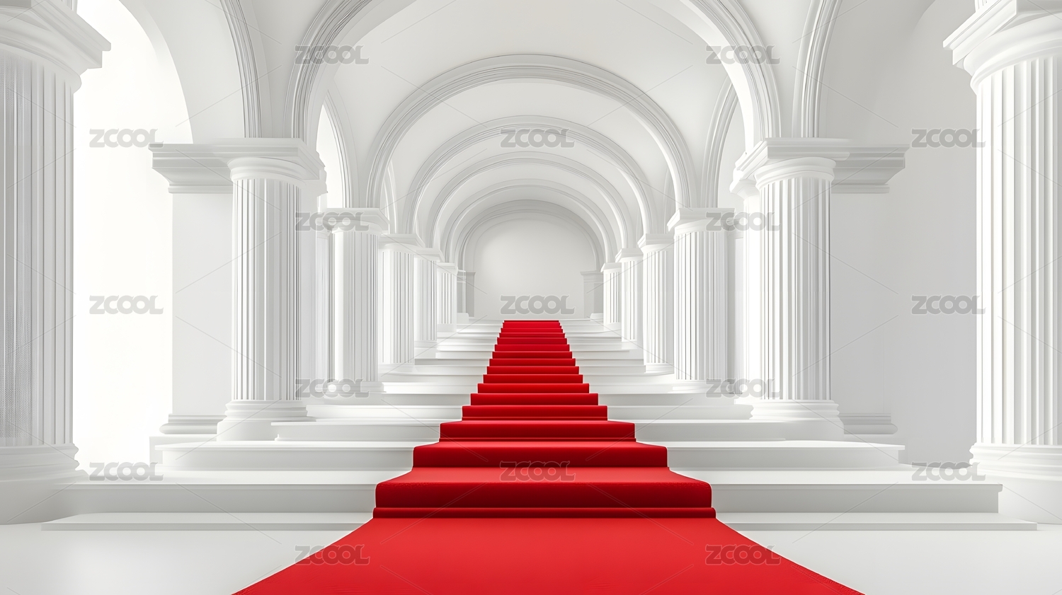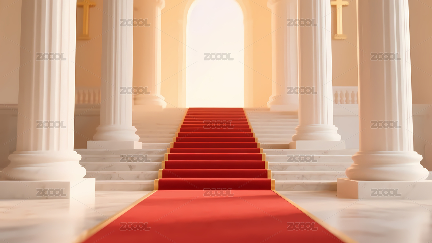 背景,柱子,走廊,红色,光线,排列,简洁,暖黄,纵深,尽头