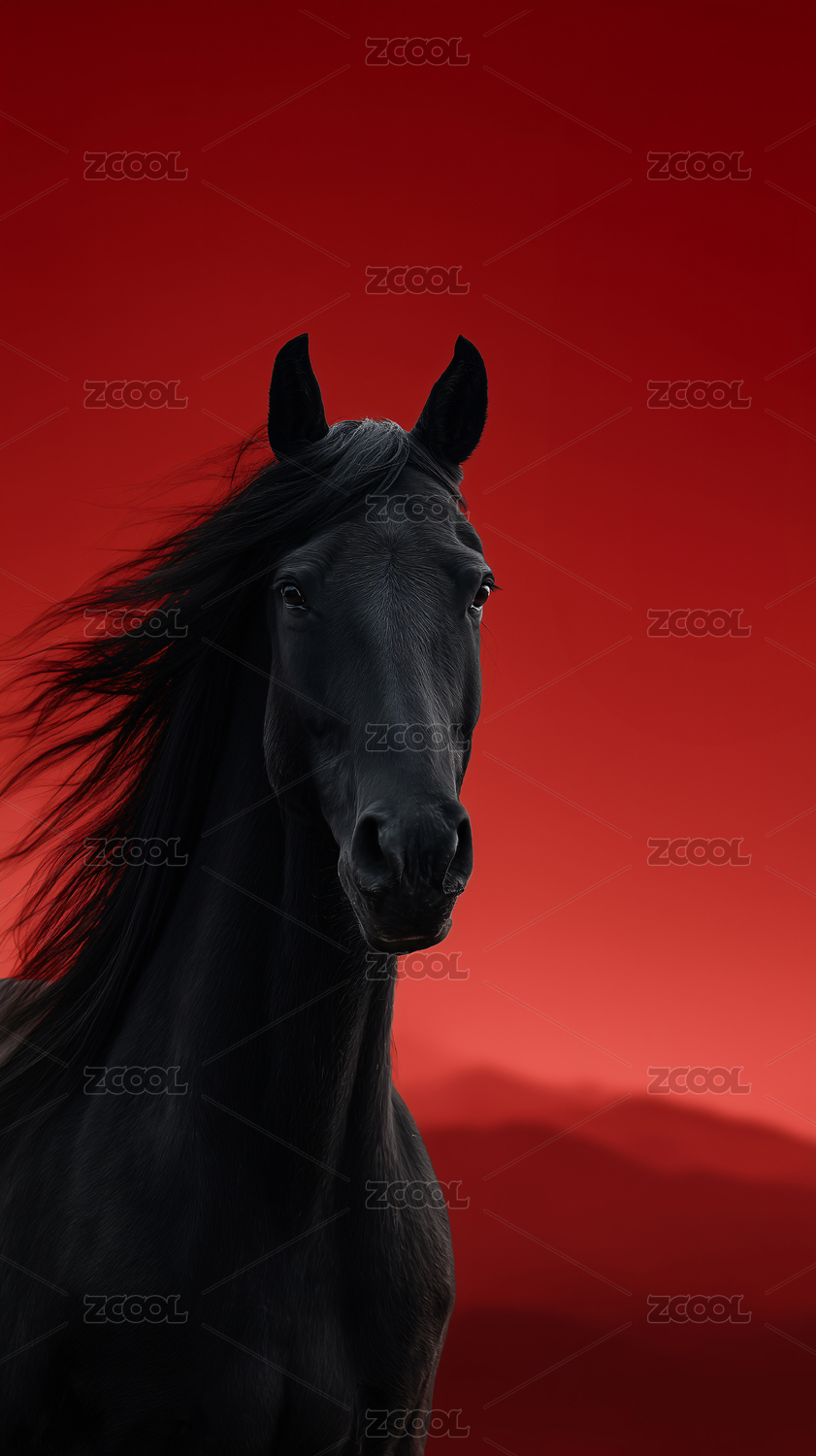 黑马,骏马,马,红色背景,鬃毛,优雅,高贵,力量,速度,神秘