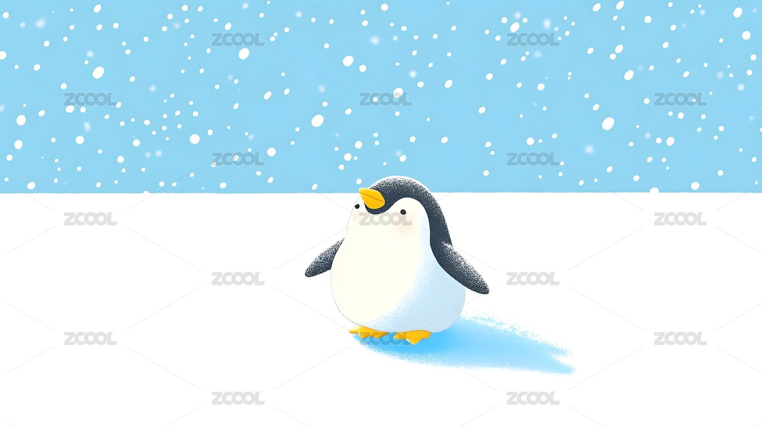 小企鹅一脚踩在冰块上快摔倒,扁平插画