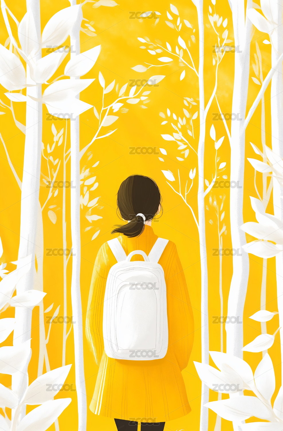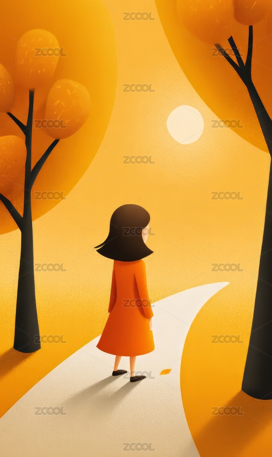 抽象扁平树下的女孩插画