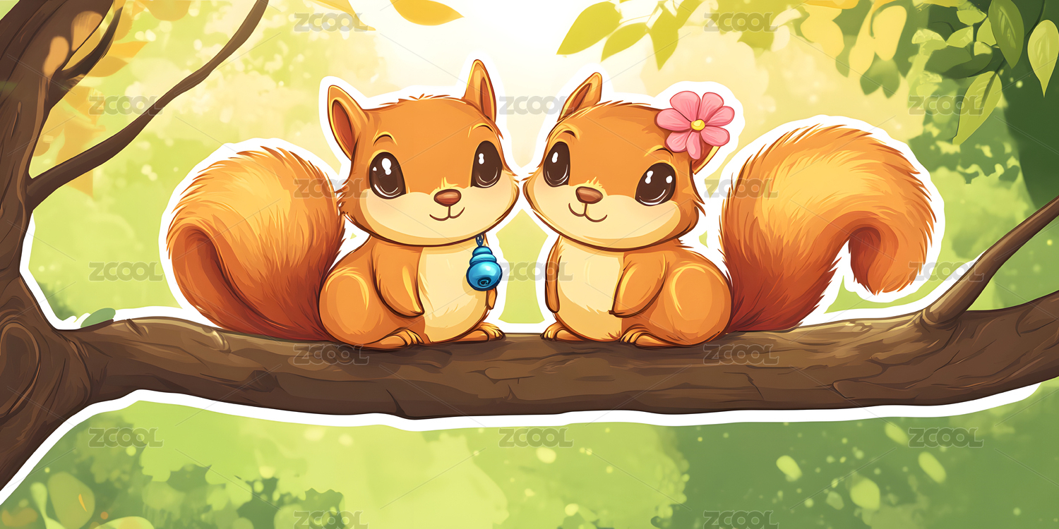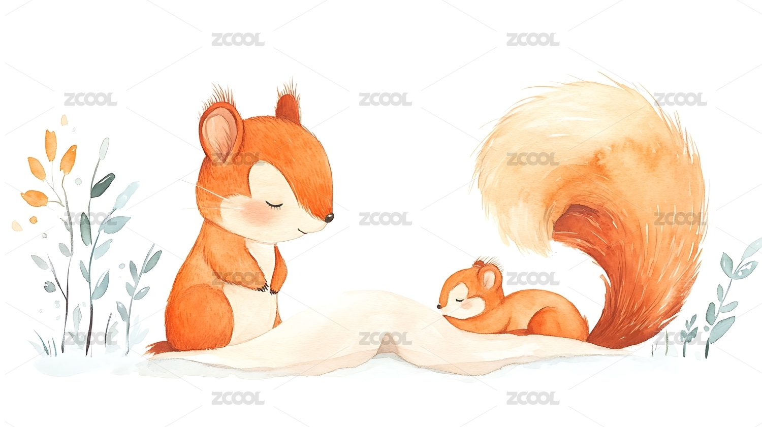 水彩,树枝,户外,卡通,Q版,松鼠,毛绒,草地,金花鼠,可爱