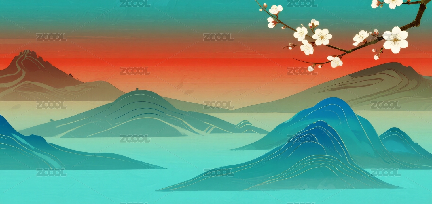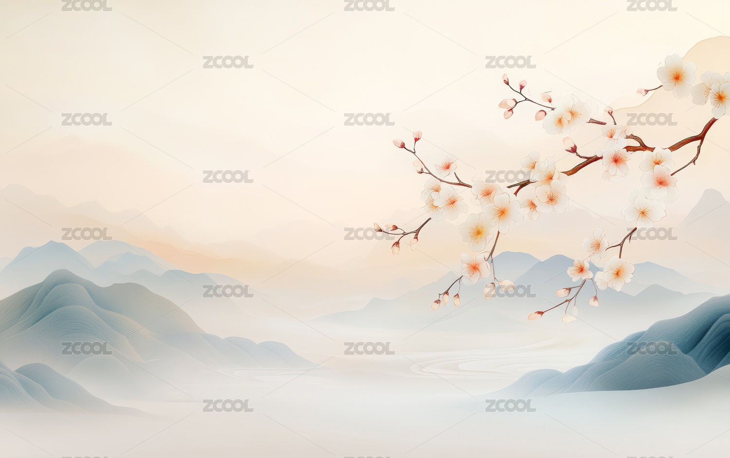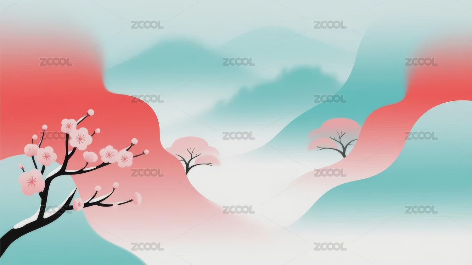 中国风抽象艺术中国传统梅花山水诗意水墨画