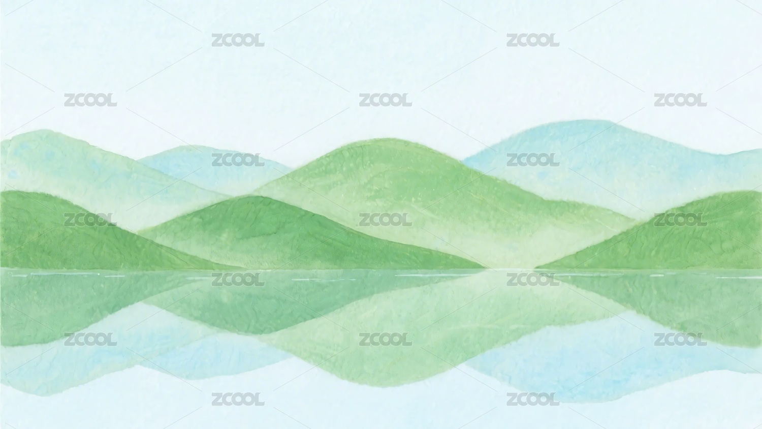 绿色山水倒影插画