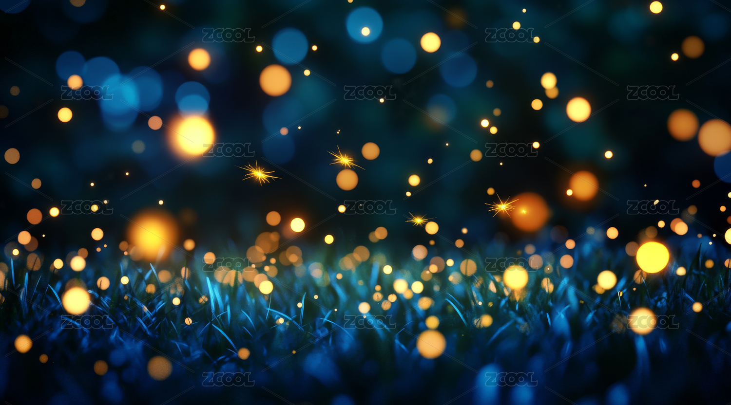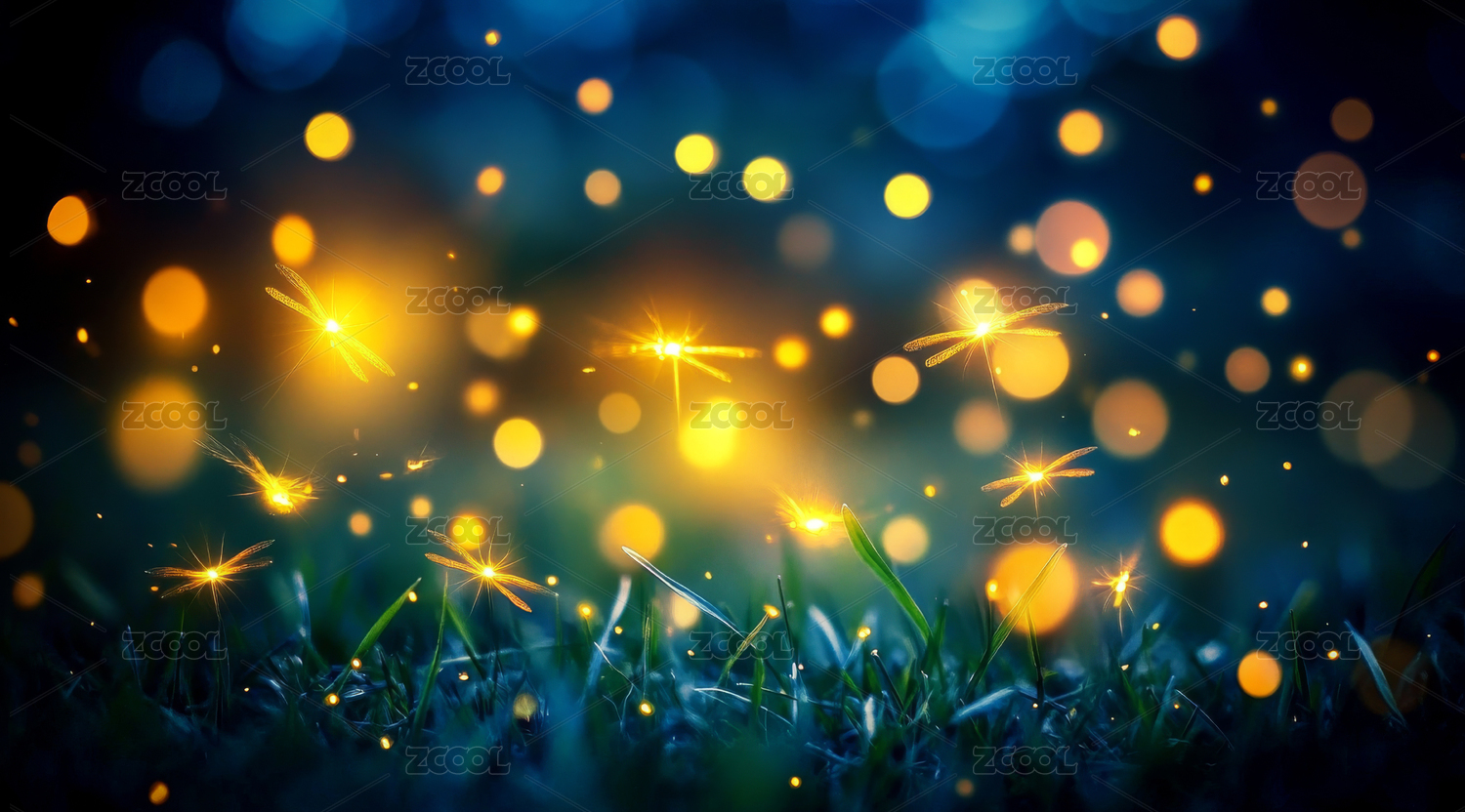 夜幕下的萤火虫与草地