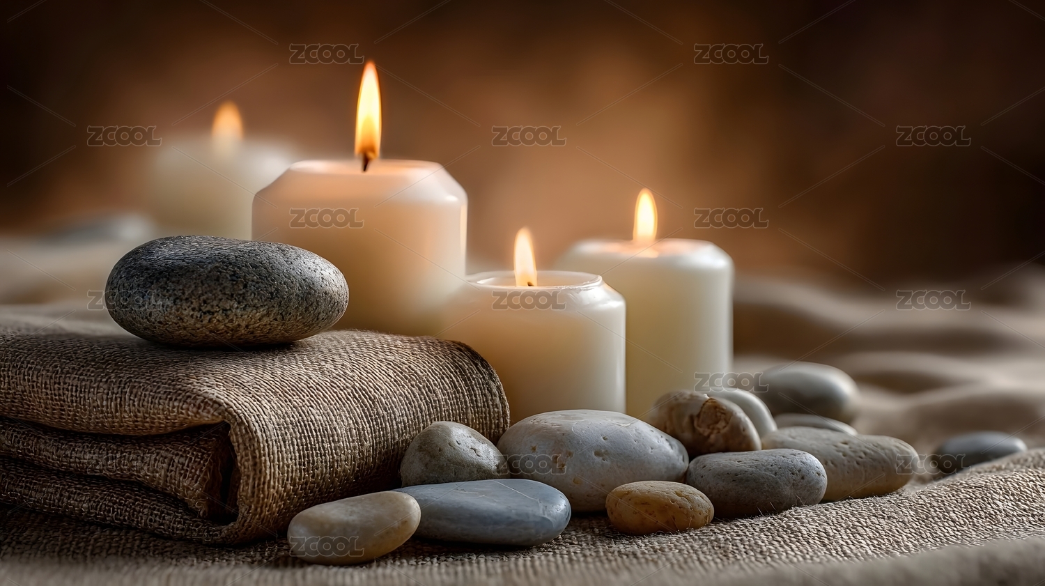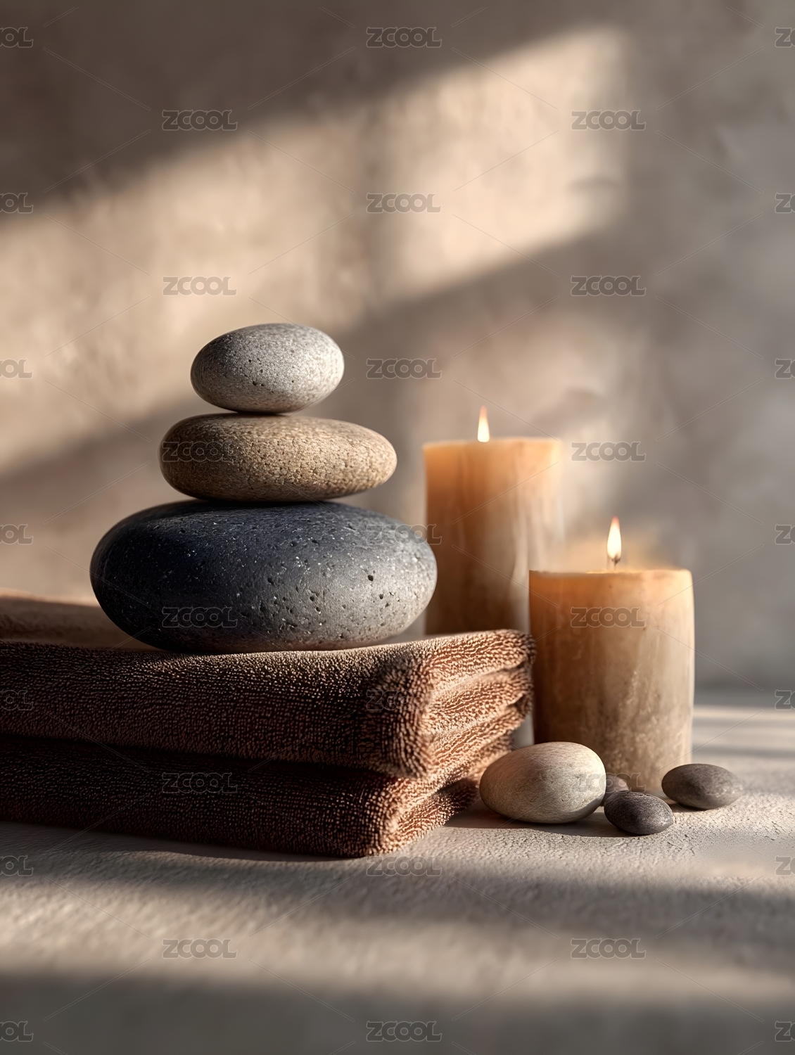 蜡烛与石头的宁静氛围