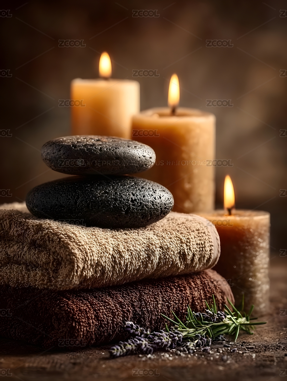 spa放松按摩蜡烛毛巾