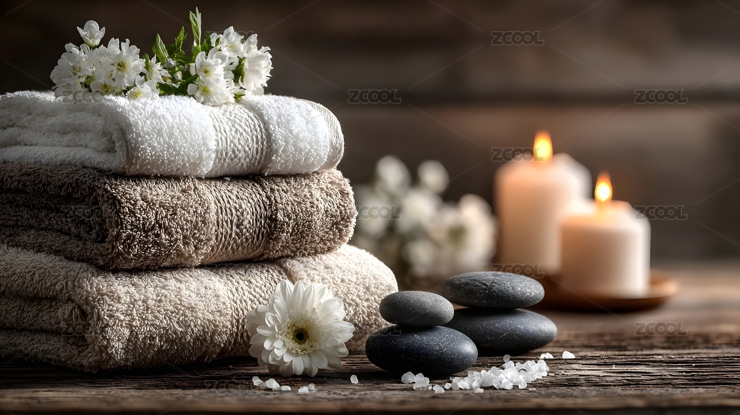 蜡烛与 spa 元素的放松场景