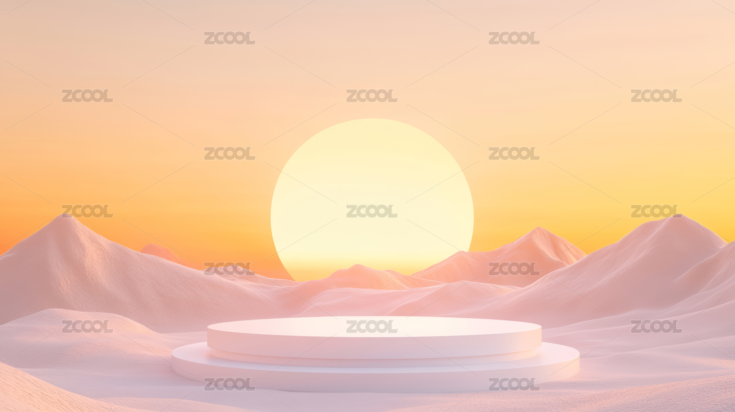 沙漠戈壁滩地形与发光科技平台产品展台背景