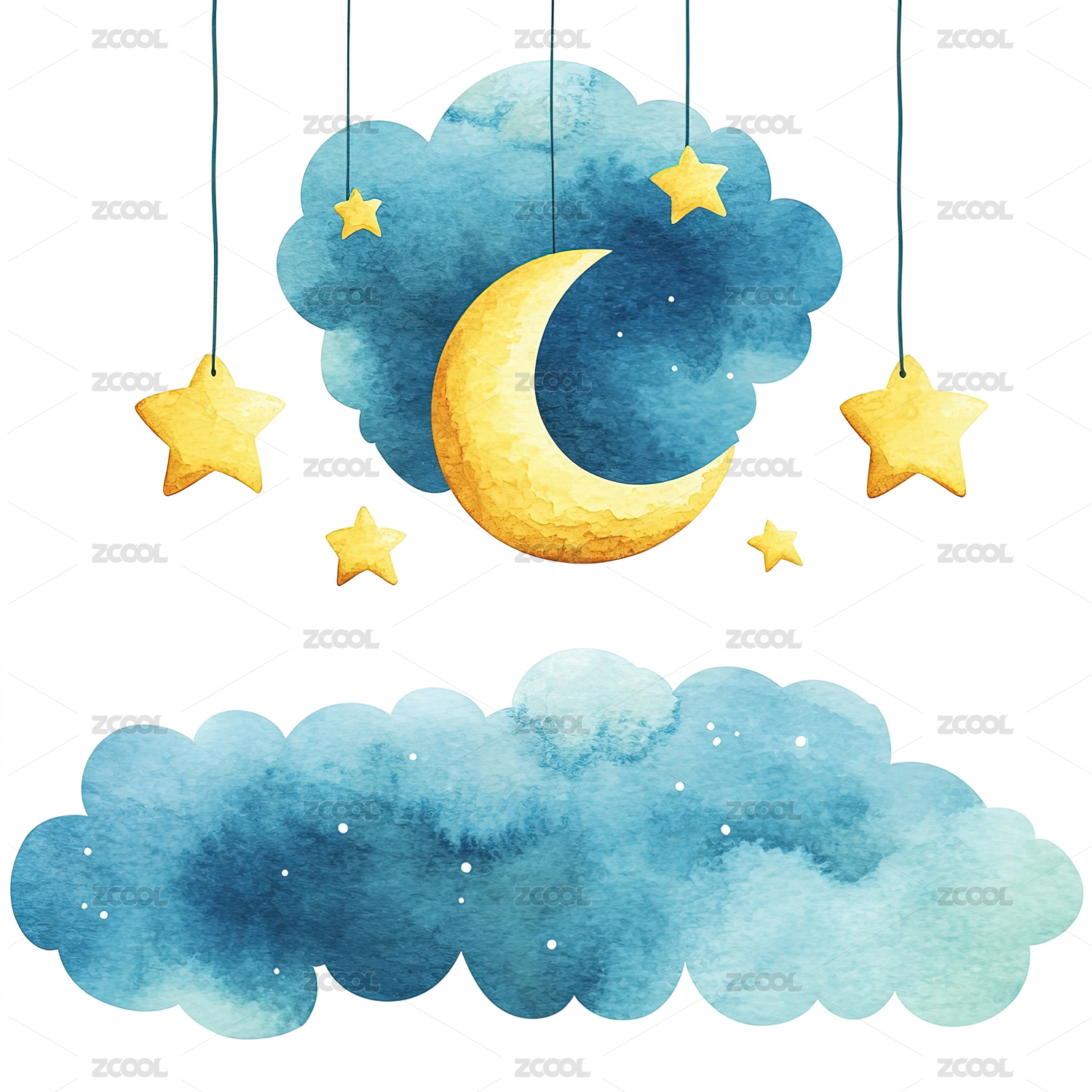 蓝色水彩云朵插画
