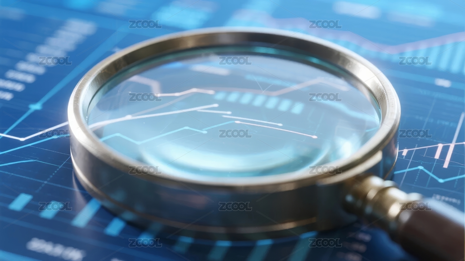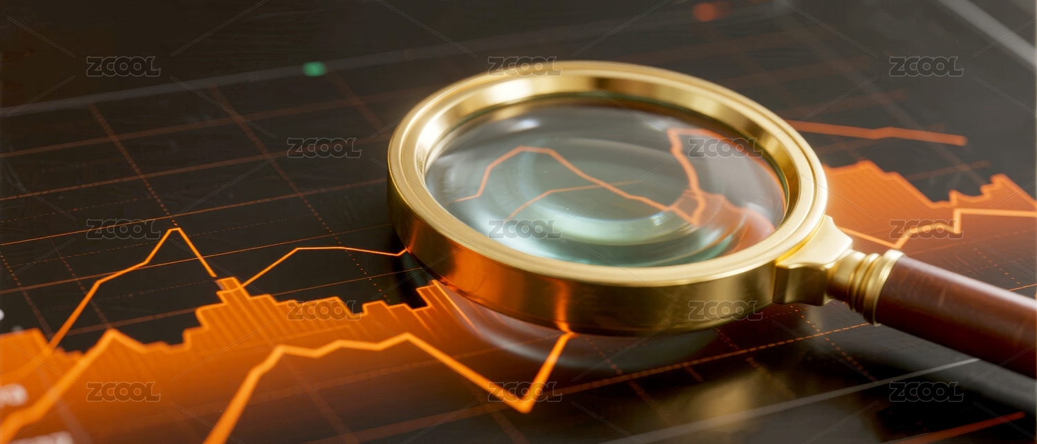 放大镜聚焦金融图表场景