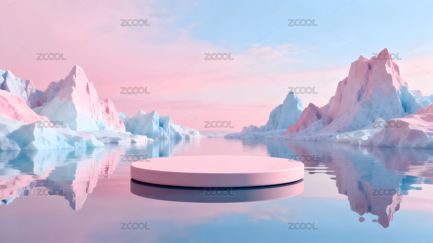 自然,平台,水面,天空,简约,舞台,圆台,倒影,晚霞,日落