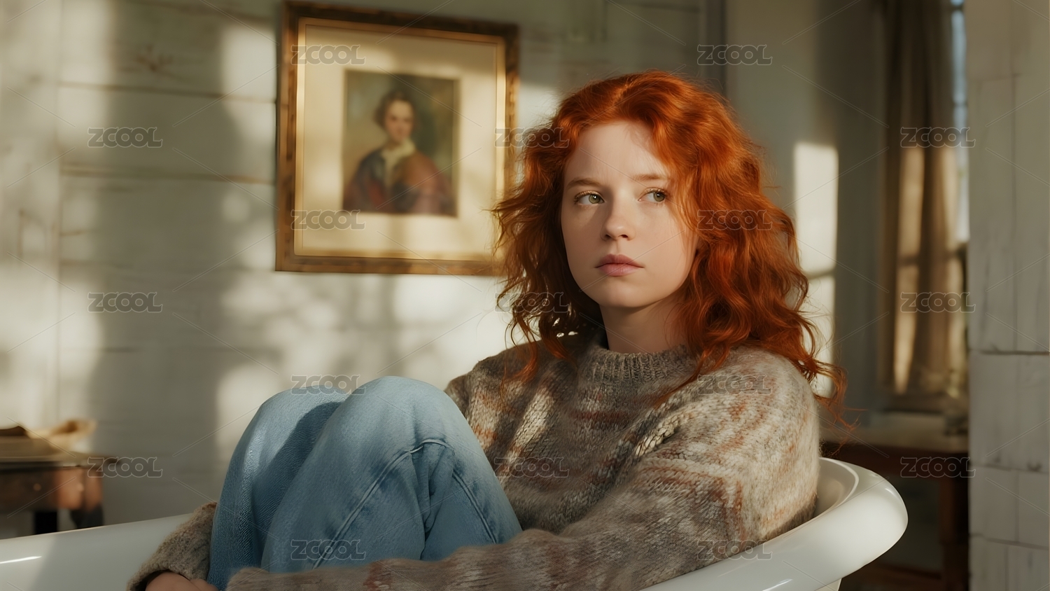 红发女子浴缸中沉思