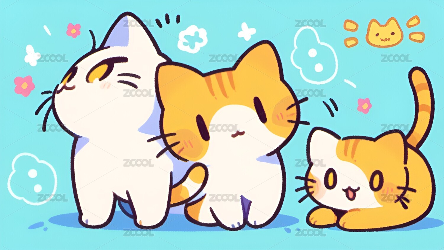 动画,漫画,动漫,卡通,小猫,猫,可爱,治愈,Q版,壁纸