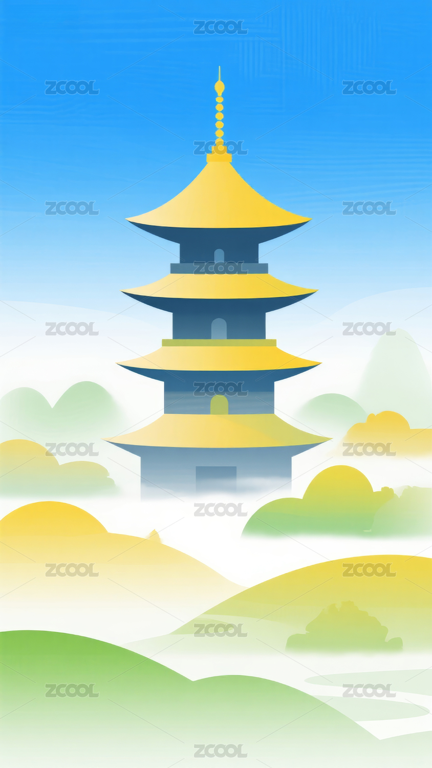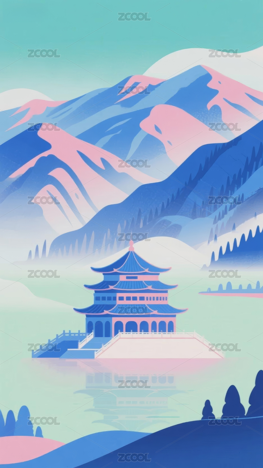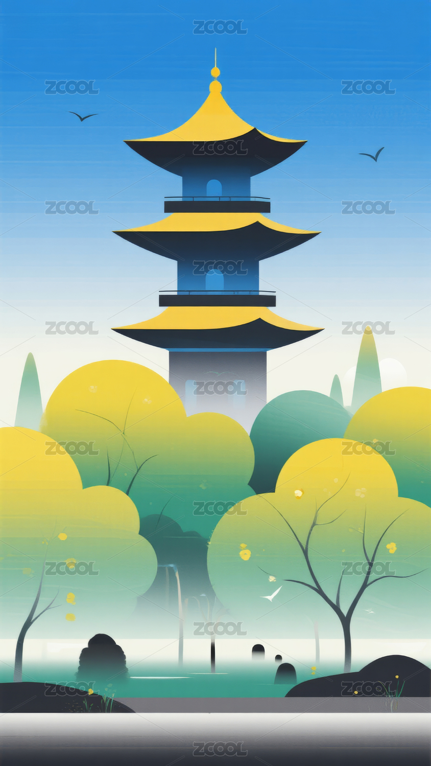 河流, 树木, 建筑, 自然, 美丽, 文化, 艺术, 和谐, 仙境, 楼阁