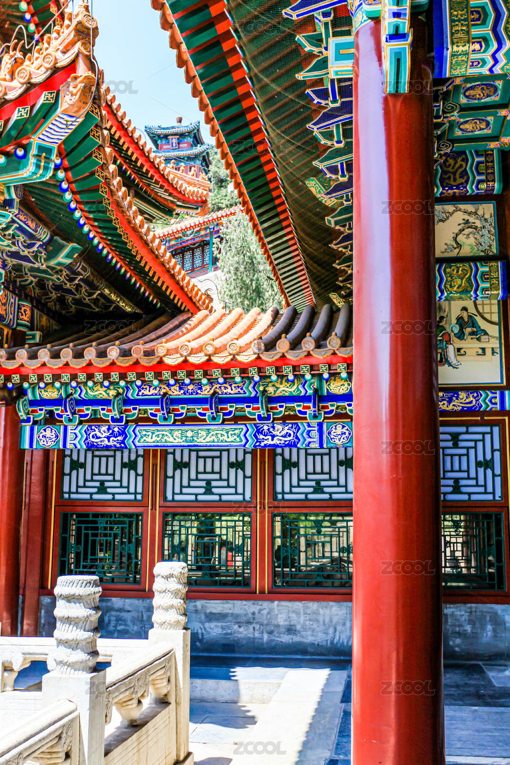 中国北京颐和园内贵寿无极院的雕梁画栋