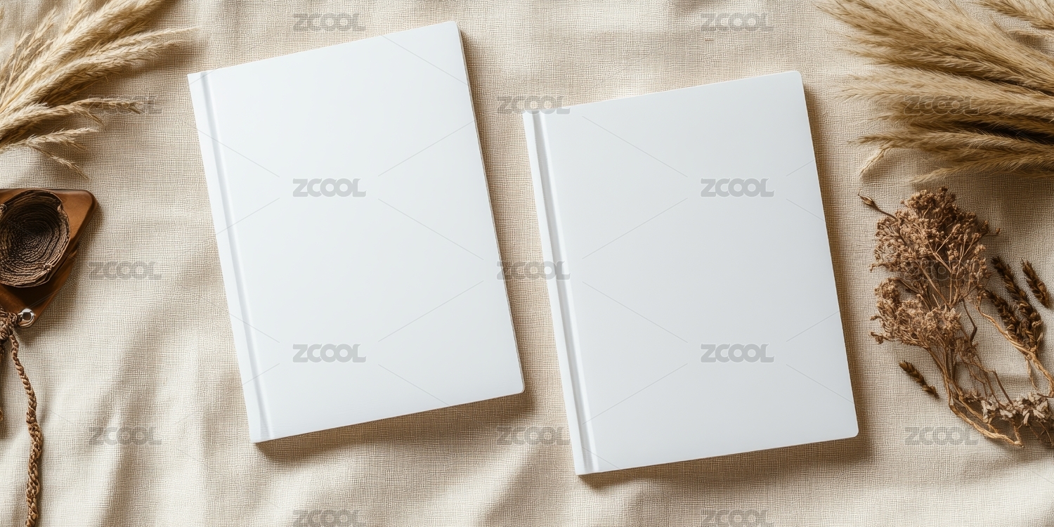 桌上书籍与干植物装饰
