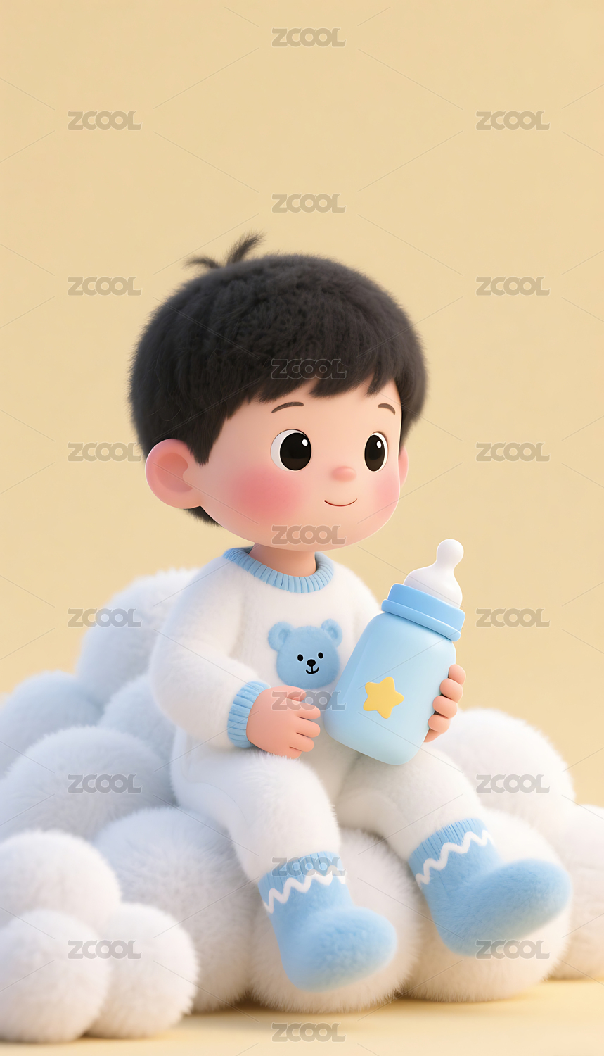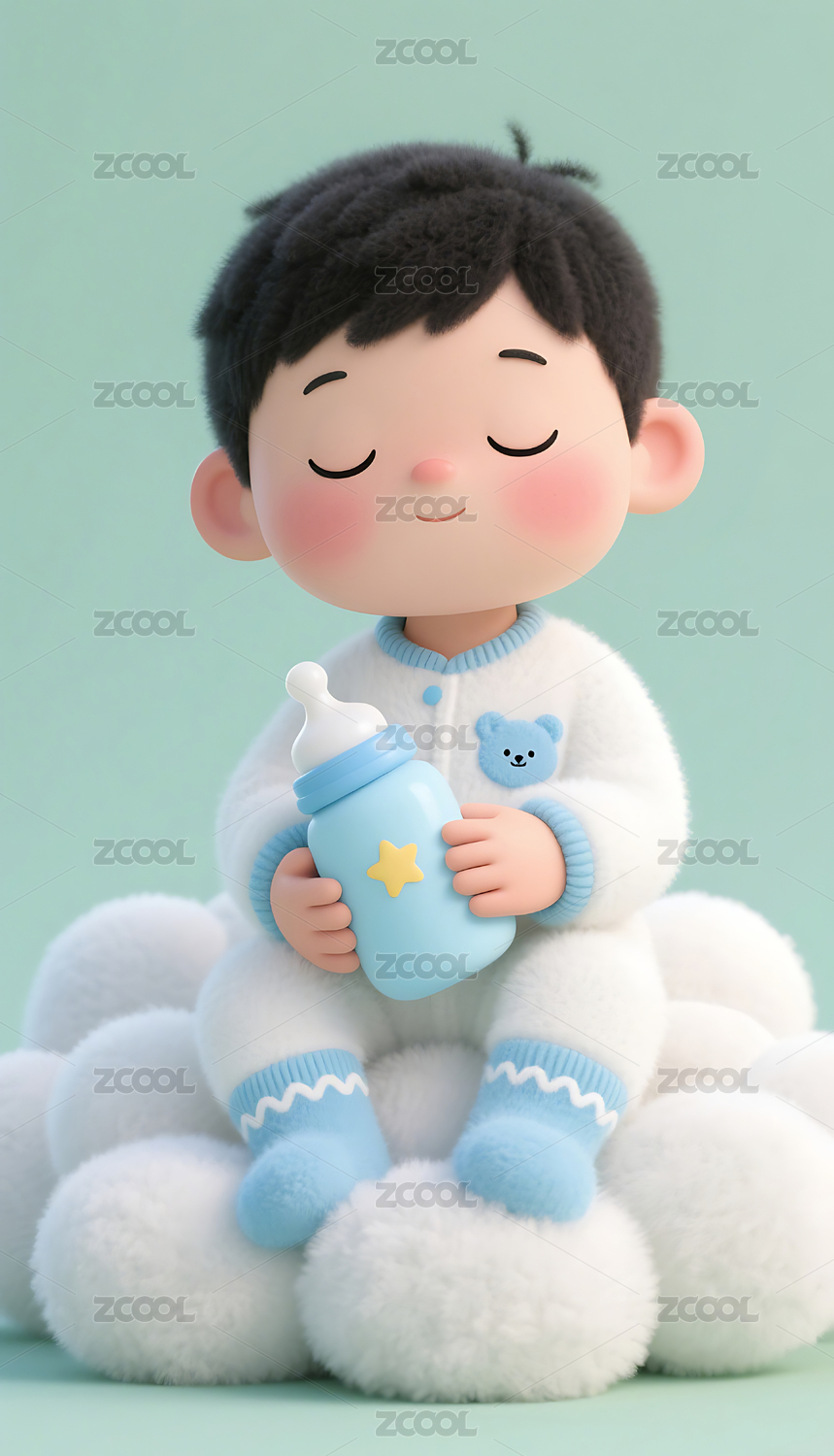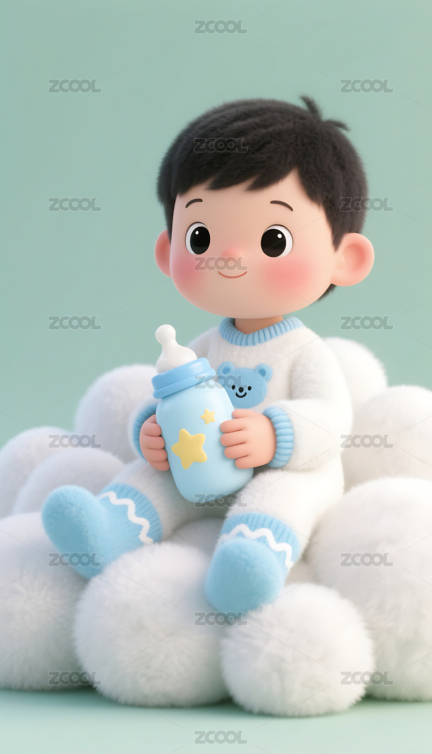3D,插画,背景,壁纸,蓝天,卡通,人物,玩具熊,云朵,奶瓶