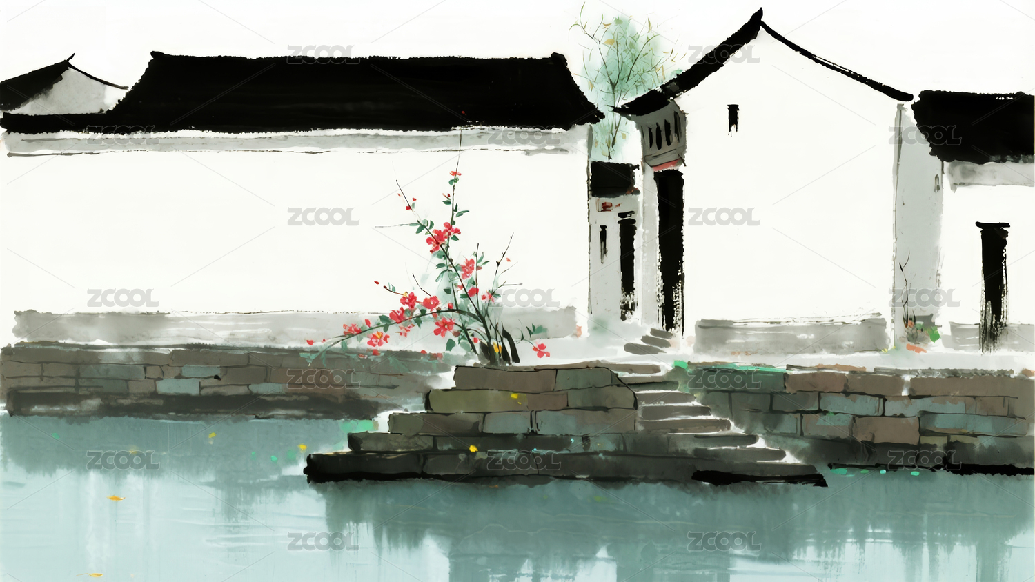 江南水乡水墨风风景场景