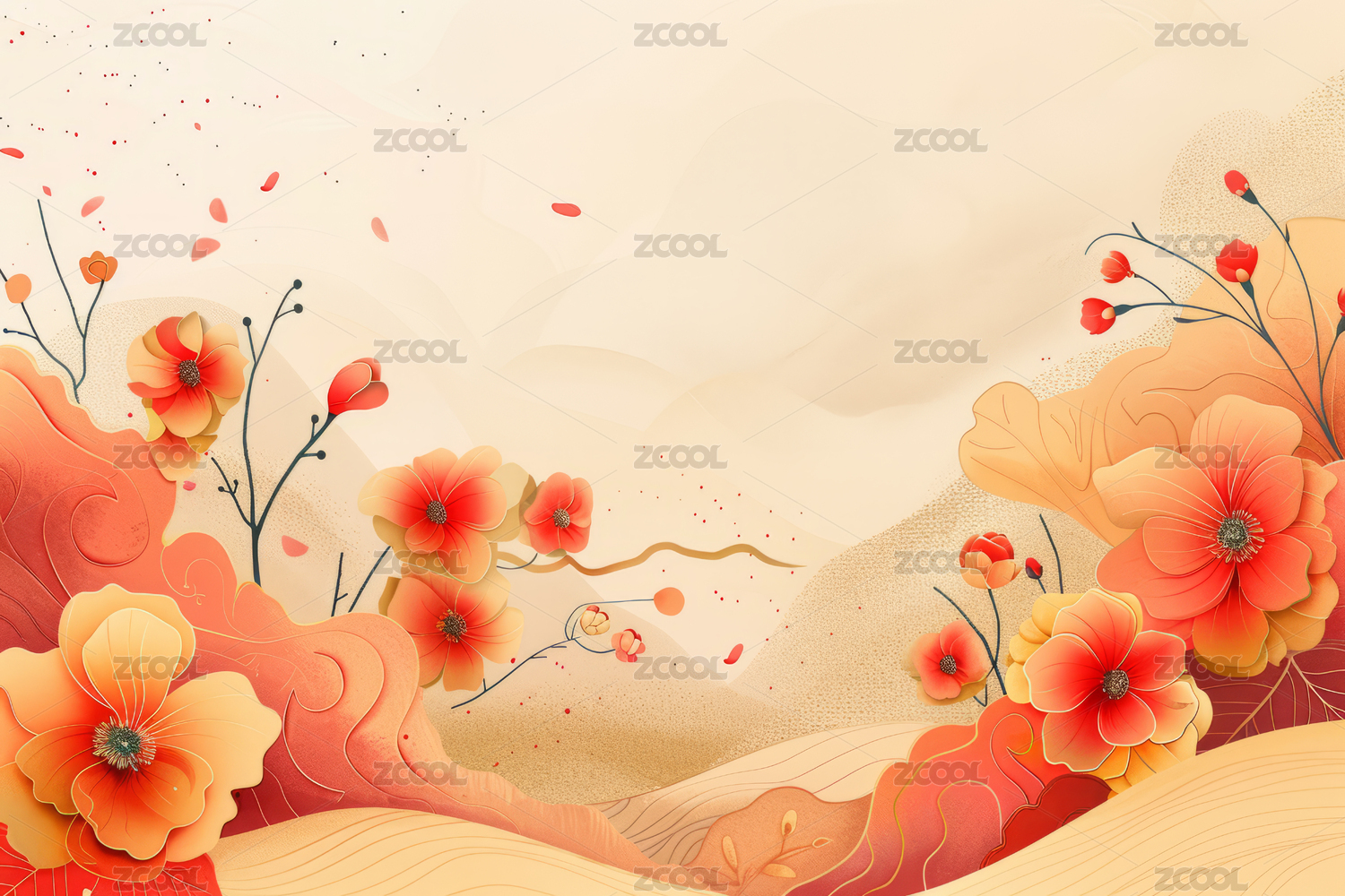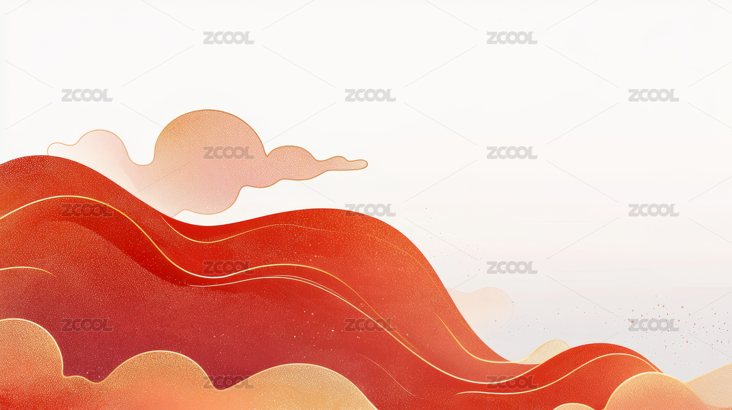 国潮风新年春节题材喜庆山水祥云插画背景插画