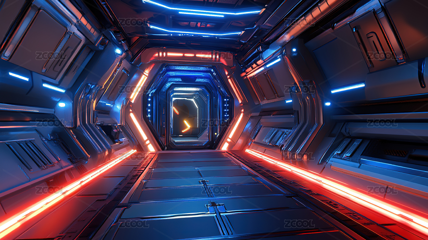 未来科技走廊霓虹灯光映照