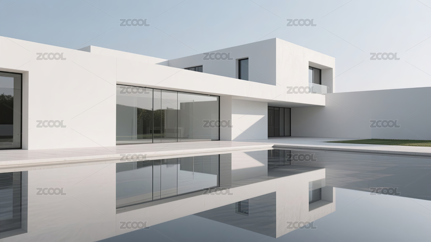 现代别墅建筑泳池倒影