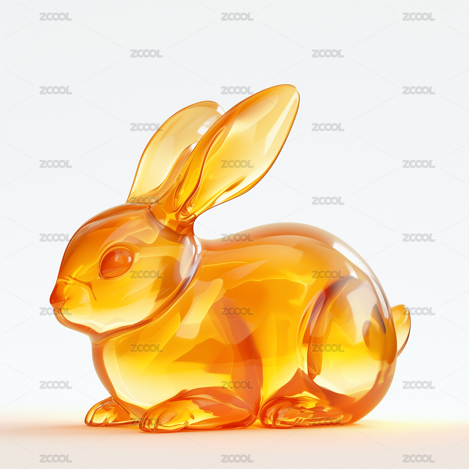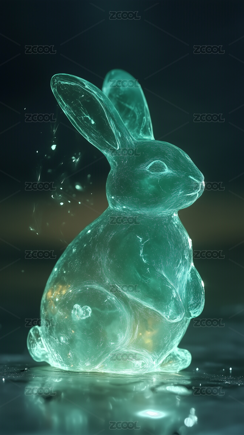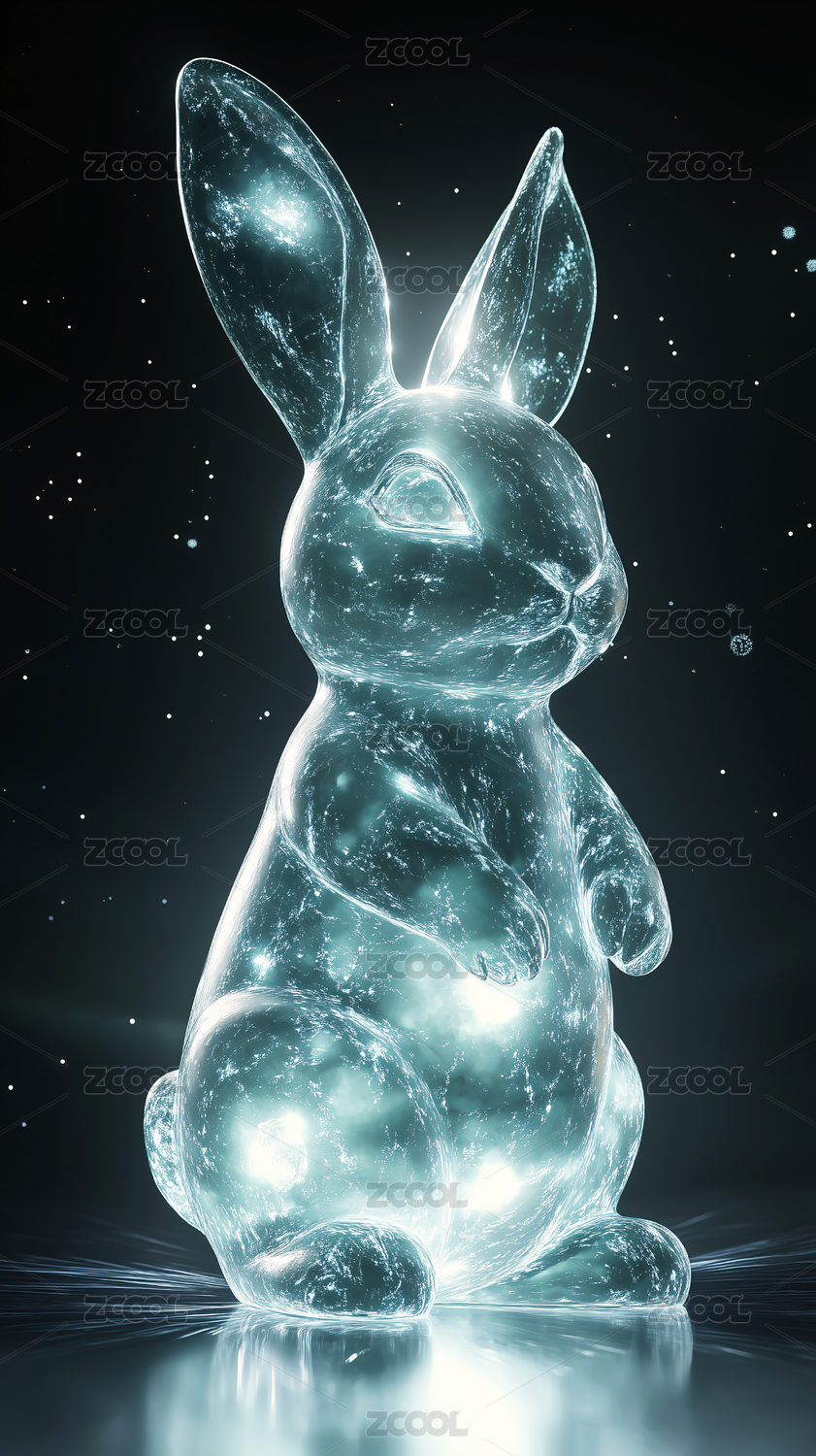 静坐的透明发光玉兔