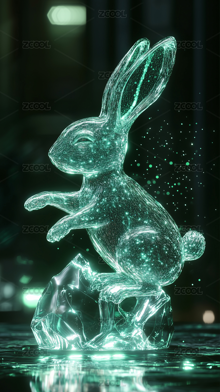悬浮的透明发光玉兔
